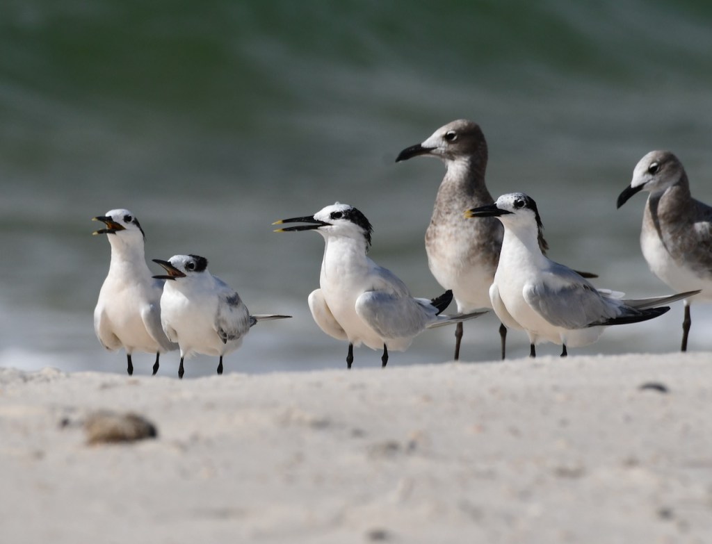Sandwich Terns were the only type of tern I saw when walking the beach at Fort Morgan yesterday. Terns are one of my favorite beach birds.