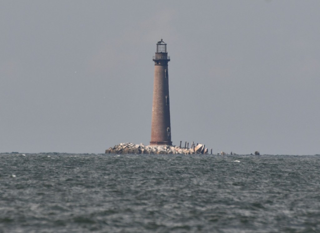 The Sand Island Lighthouse is a decommissioned lighthouse that stands in the middle of the Mobile Bay shipping channel. On a clear day, you can see it from the shores of Fort Morgan. It is a distance of about 3.2 miles.