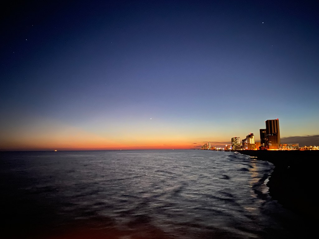 Gulf State Park had a stargazing event at the Gulf State Pier. As we waited for the sky to darken, I took a few photos. Venus was the first appearance. Our guide said that the atmosphere on Venus reflects the light and makes it very bright in the night sky.
