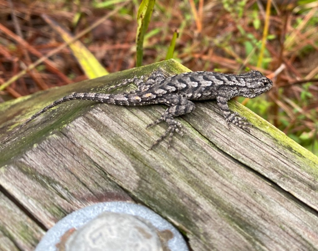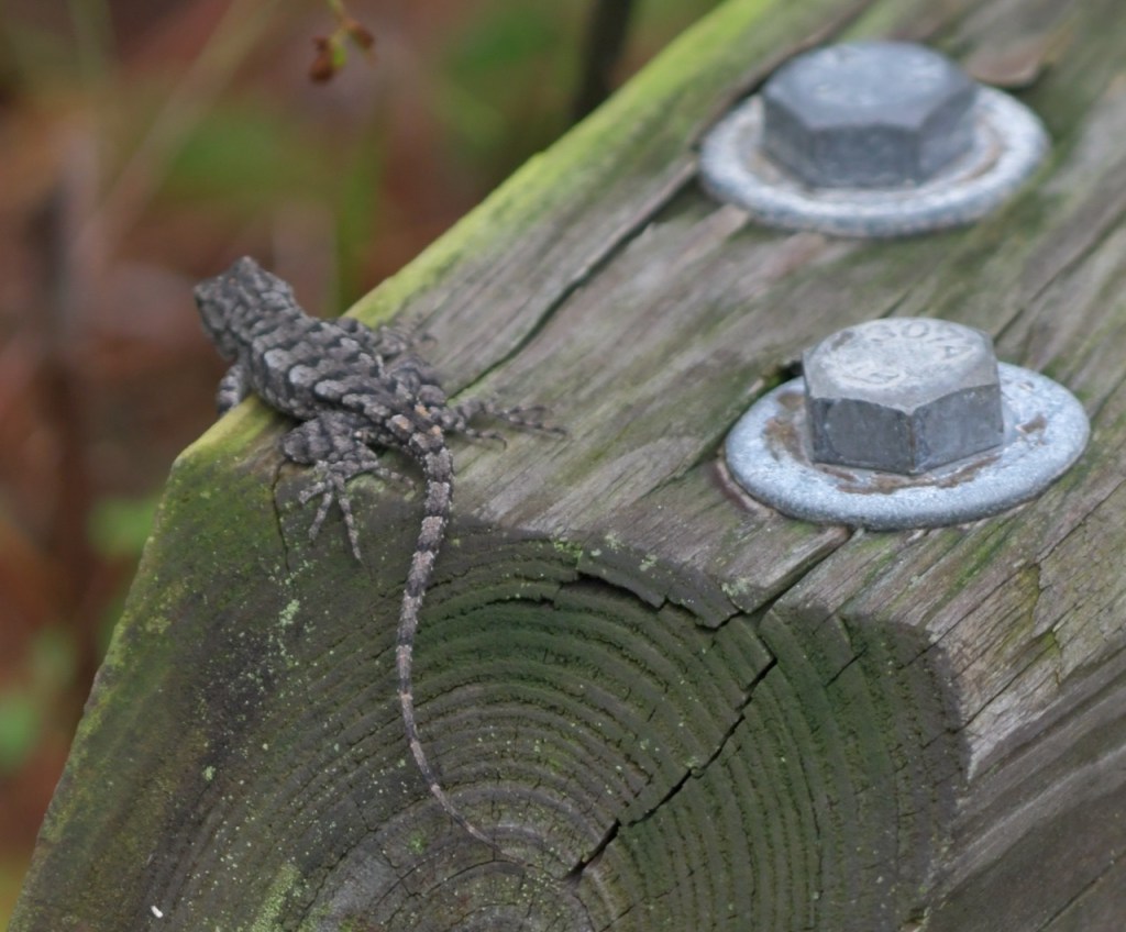 Fence lizards are spiny lizards, meaning they have rough, pointed scales on their backs. Their bodies are gray to brown in color, but males and females can be distinguished by certain color variations. Females have patterns of black horizontal stripes on their backs, while males have patches of bright blue scales on their bellies and throats. https://www.nwf.org/Educational-Resources/Wildlife-Guide/Reptiles/Eastern-Fence-Lizard