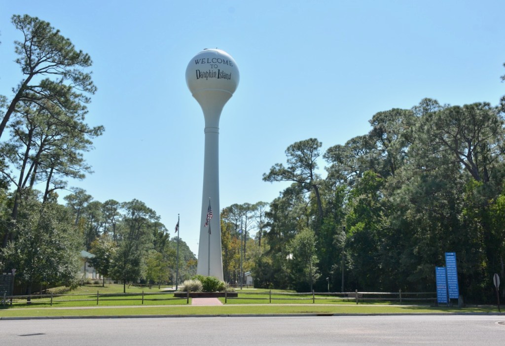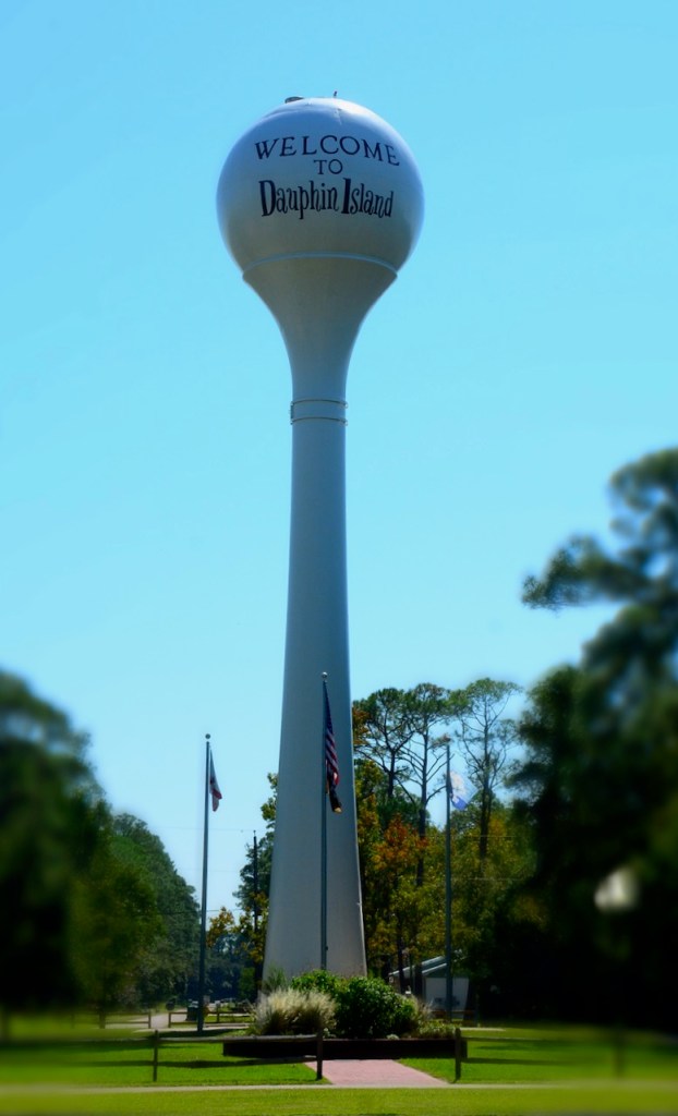 The Dauphin Island Water Tower is one of the first things that welcomes you as you decide which direction to take on the island. If you turn right, you can go to the main beach, airport, golf course, or north beach. If you turn left, you can go to the ferry, sea lab, shell mounds, or Audubon Bird Sanctuary.