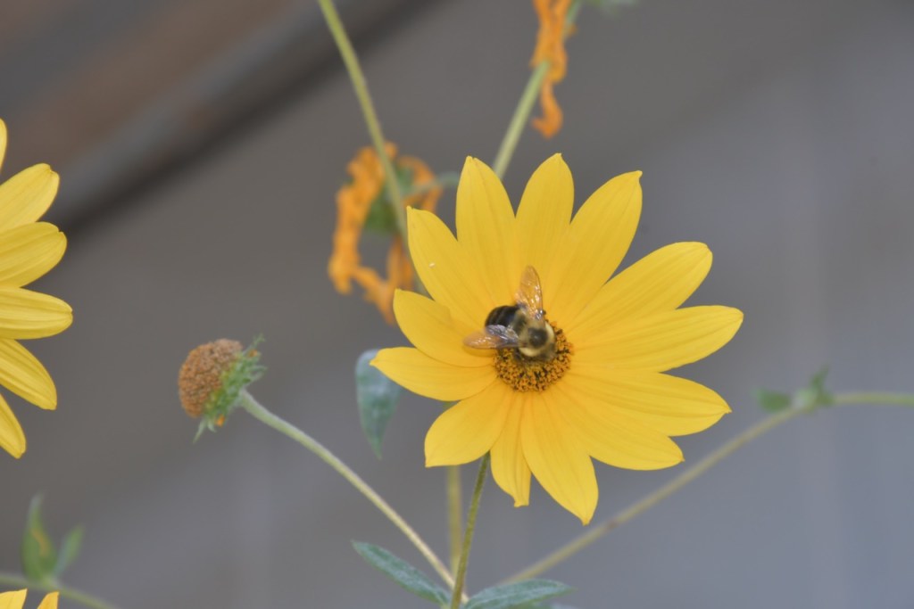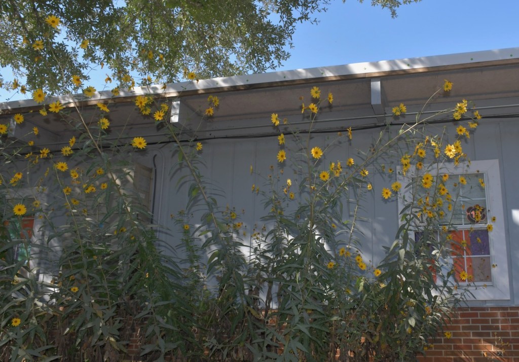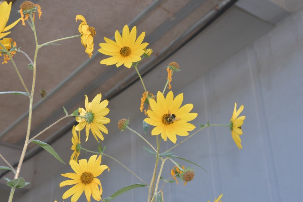These flowers have been growing at Stapleton School for more years than I can remember. This is the tallest that I’ve seen them. The other flowers are part of the pollinator garden that was added last year.