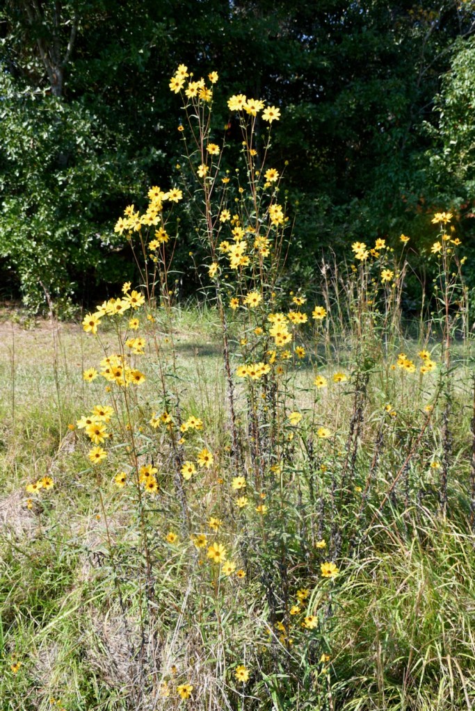 I love seeing the sunflowers growing alongside the road in the fall. This batch was growing in a ditch beside the post office. It is known as Narrowleaf or Swamp Sunflower.