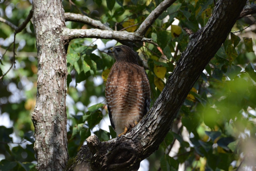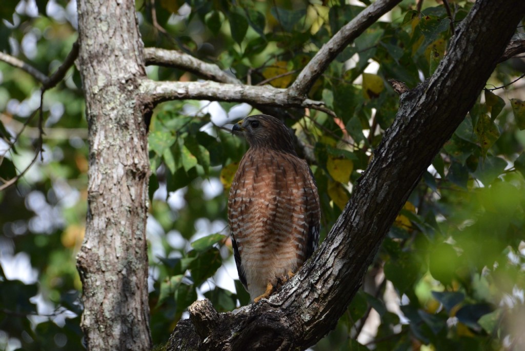 It is not often I catch this Red-shouldered Hawk before it flies away. It was quietly sitting in the tree beside the stream in my back yard. It silently flew after I took a few photos.