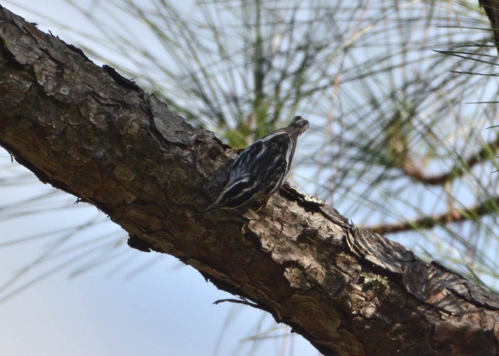 On its winter migration to Florida, Central America, and on to Peru, the Black & White Warbler will sometimes stop in my yard for a snack. It never stays long and I’ve only spotted them a couple of times. This one was flitting around my front yard and I was lucky enough to have my camera in hand at the time.