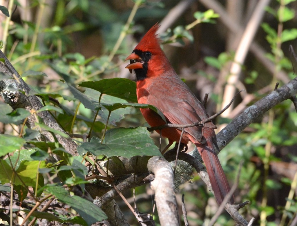 The male Northern Cardinal is easy to identify by its brilliant red feathers. I believe they live in my yard because I see them all during the day. I’ve seen their nest in some of my trees. They are beautiful birds.