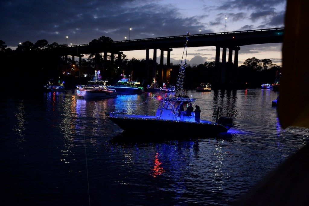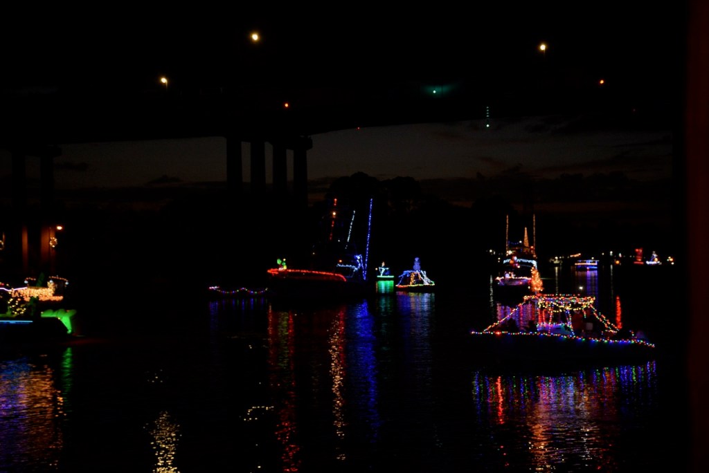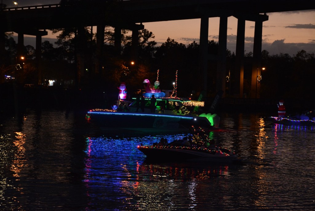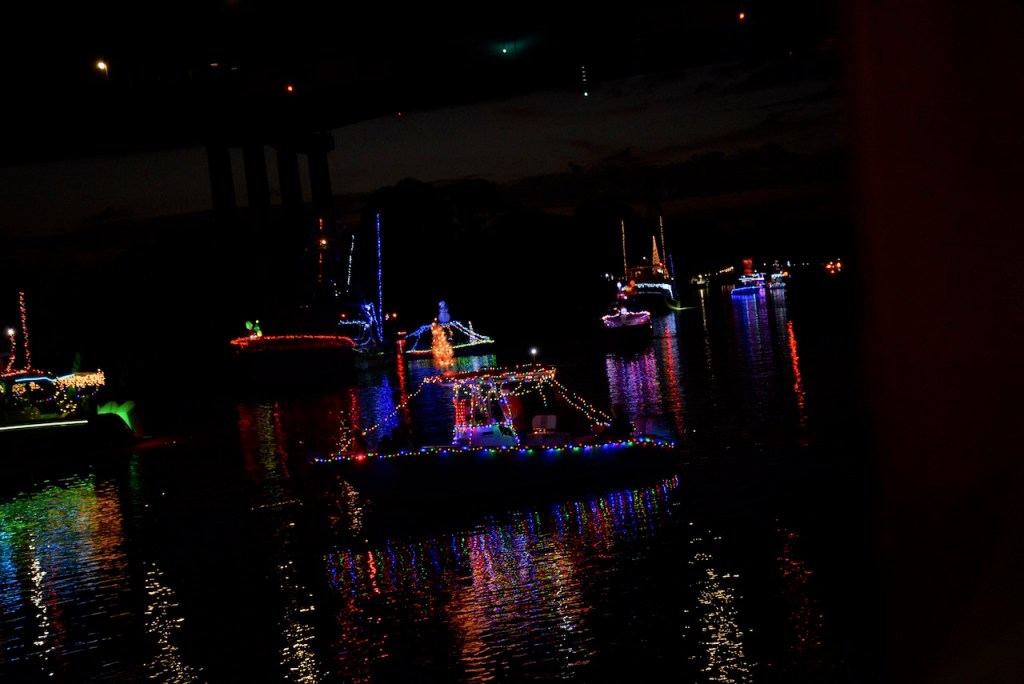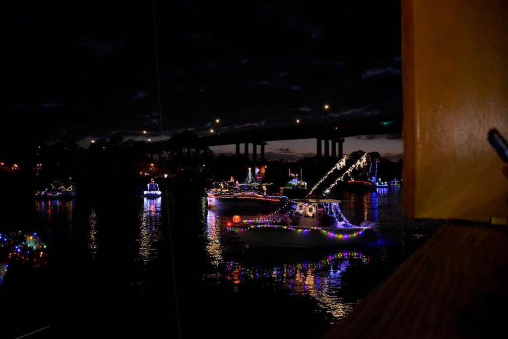 Lucy Buffett’s LuLu’s in Gulf Shores has an annual lighted boat parade. I drove down tonight so I could watch and take photos. There were a lot of very nice boats in the parade. They floated from LuLu’s to the Wharf on the intercostal canal.