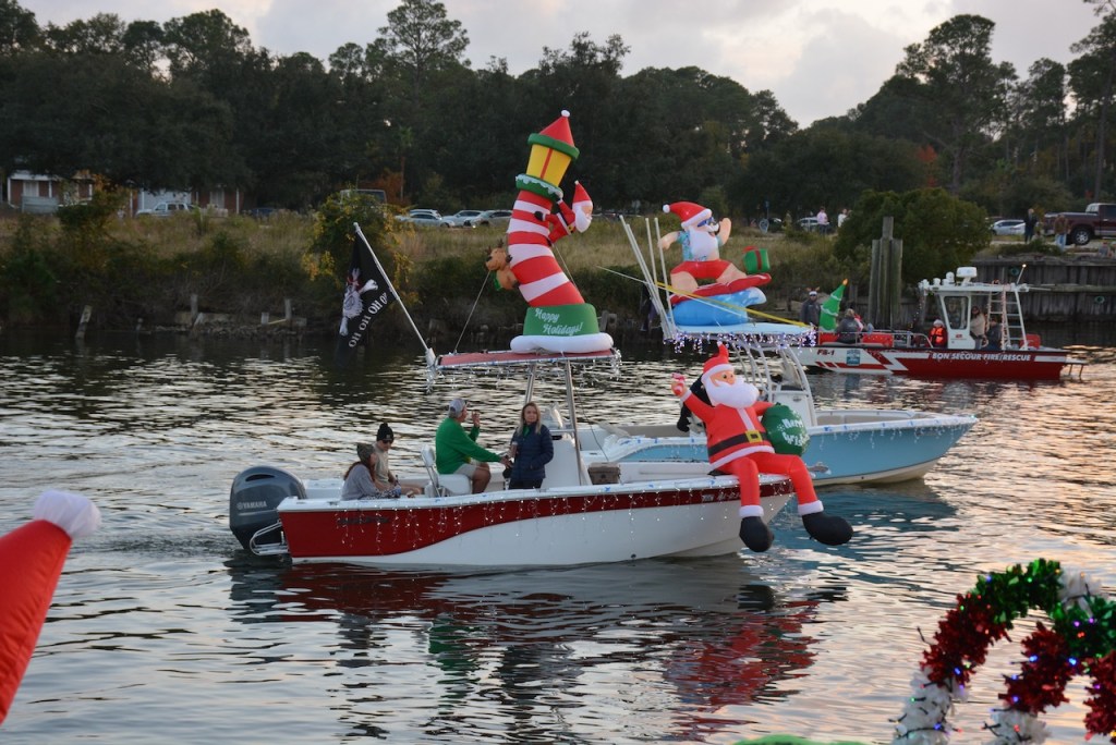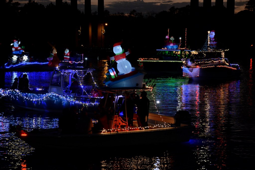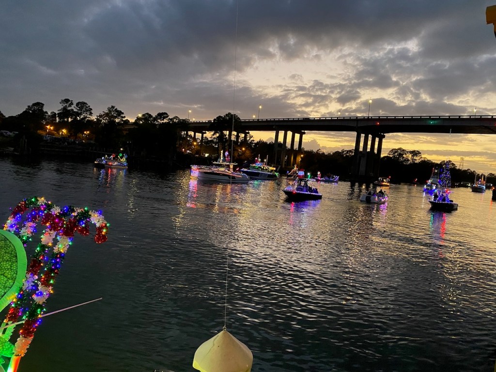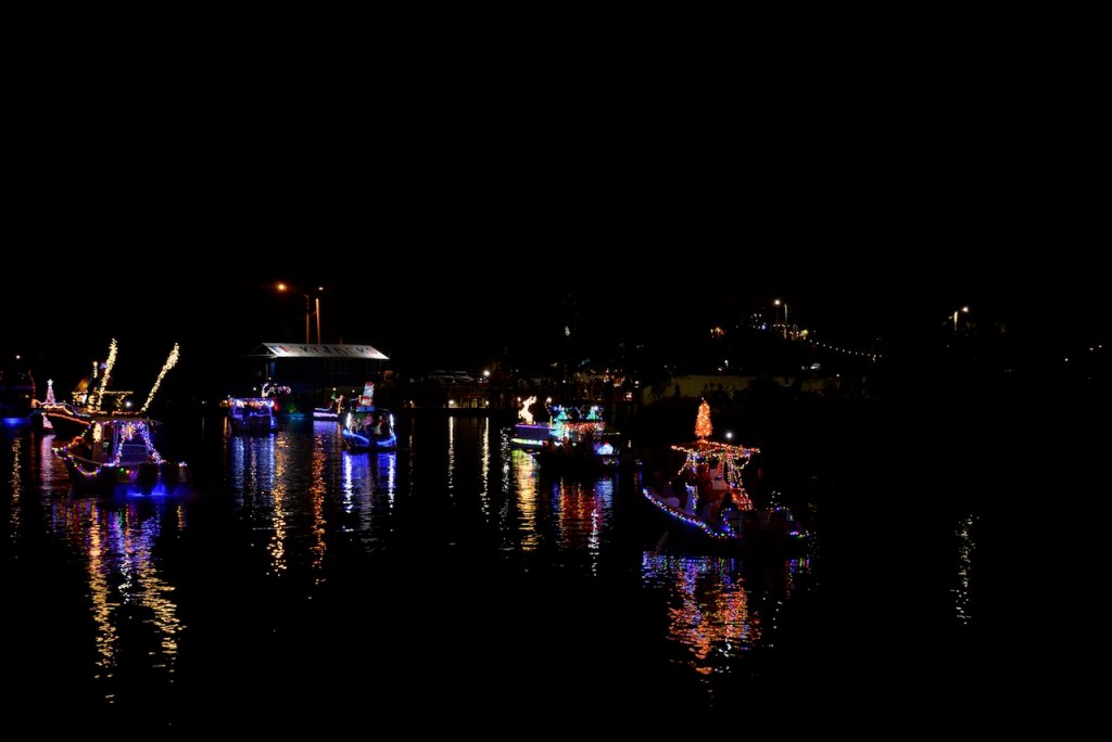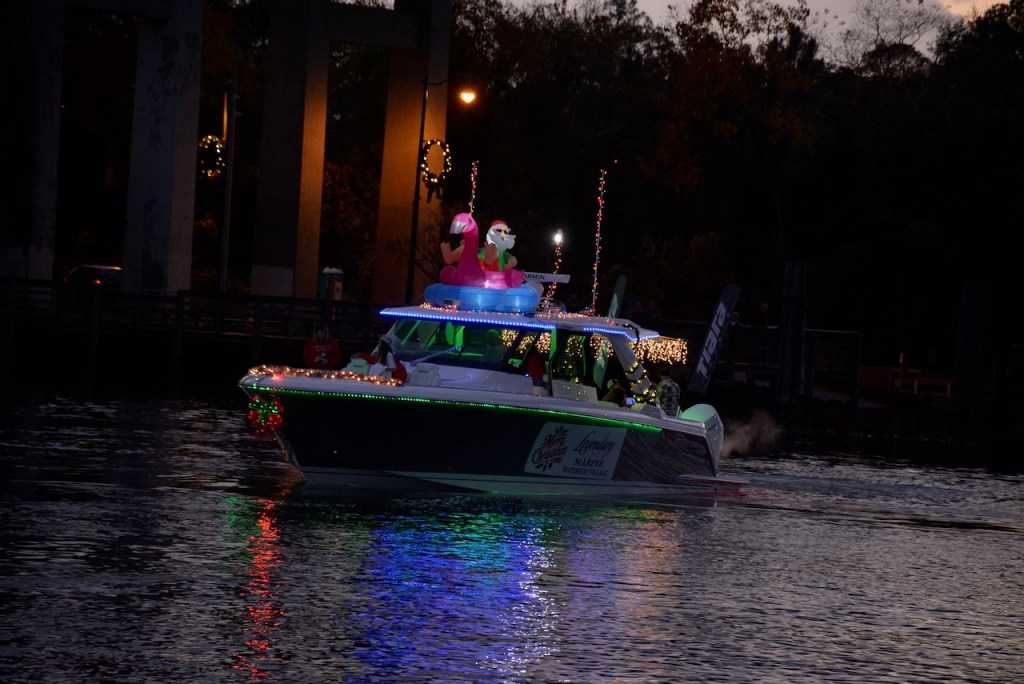 Lucy Buffett’s LuLu’s in Gulf Shores has an annual lighted boat parade. I drove down tonight so I could watch and take photos. There were a lot of very nice boats in the parade. They floated from LuLu’s to the Wharf on the intercostal canal.