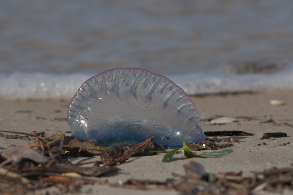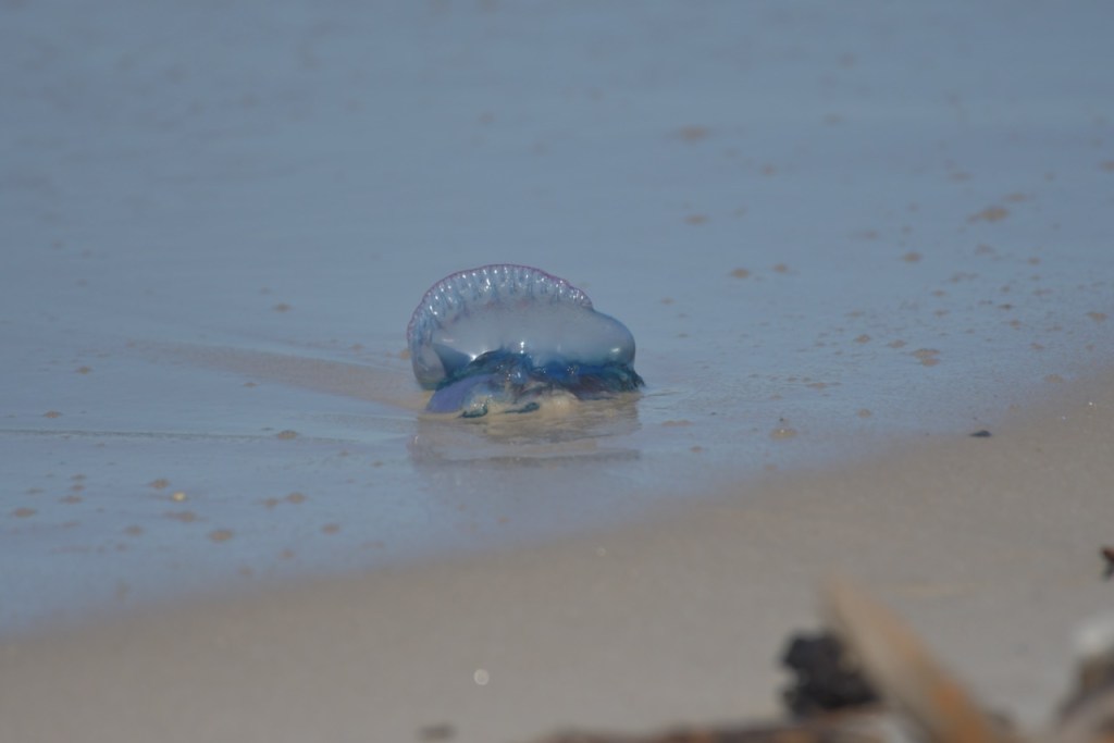 Instead of seeing birds on the beach at Fort Morgan, I saw Portuguese Man o Wars. I would hate to see them while I’m in the gulf, but they are pretty on the beach. Apparently a recent storm washed them up. Other walkers said there were even more on the beach yesterday.