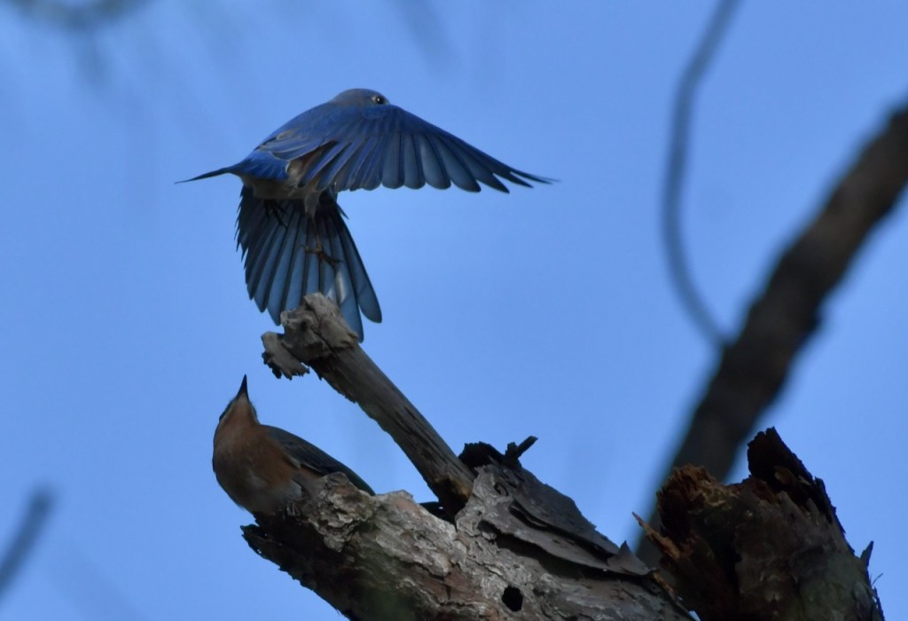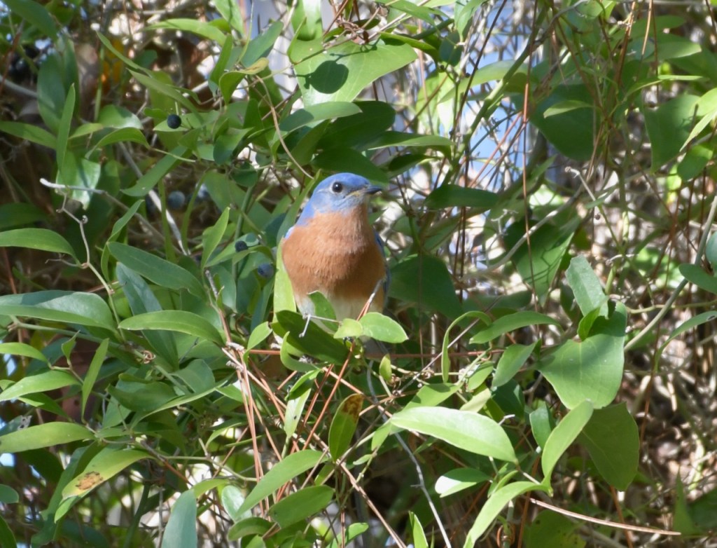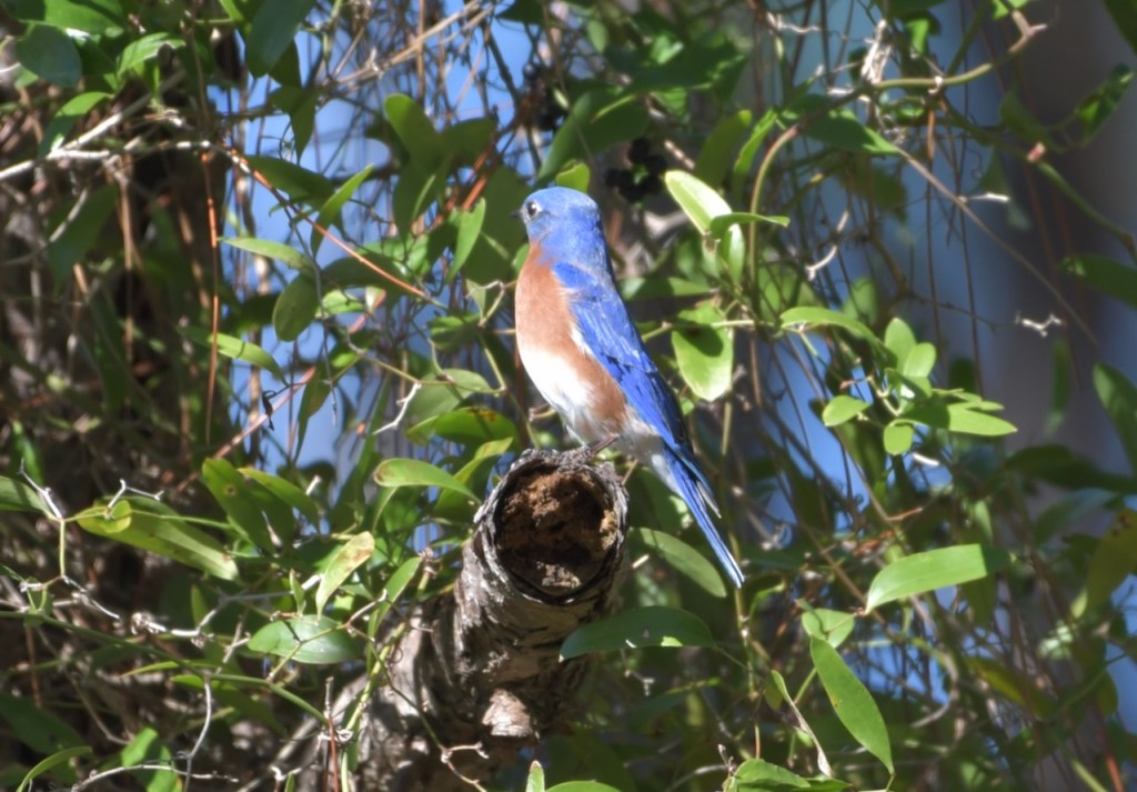 Every time I see a bluebird, I think of the term, Bluebird of Happiness. They are such pretty birds that seeing one does make you happy. Apparently multiple cultures for thousands of years have thought the same thing.