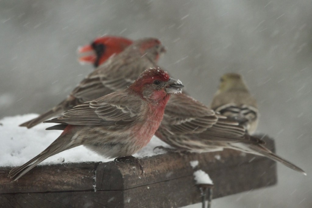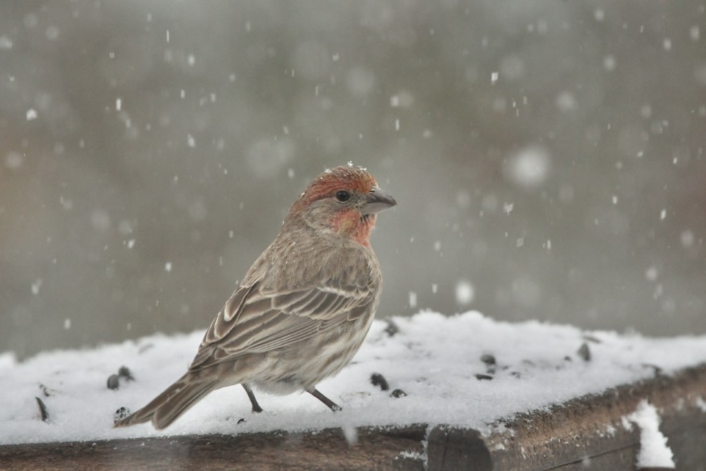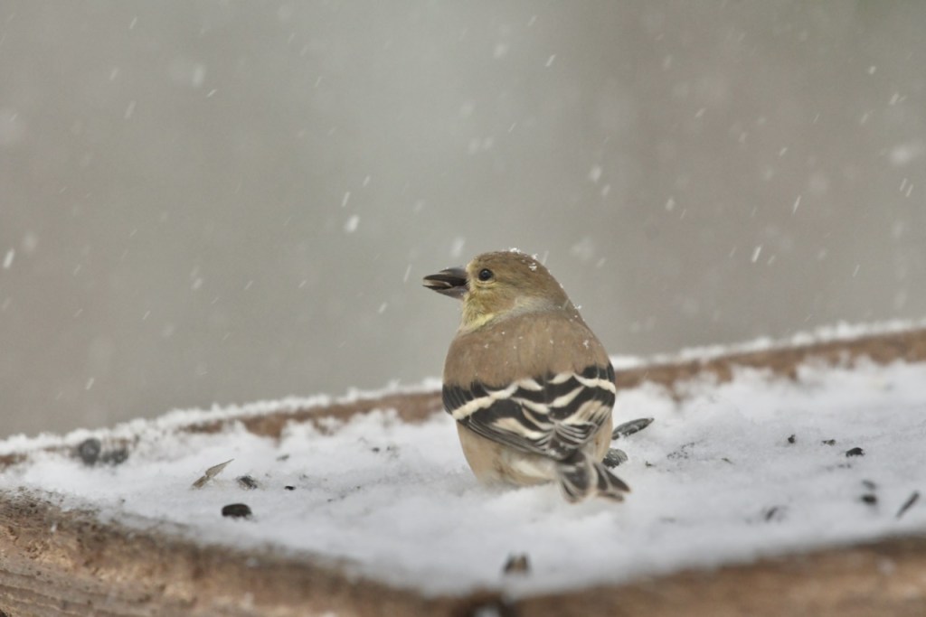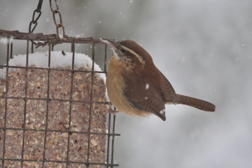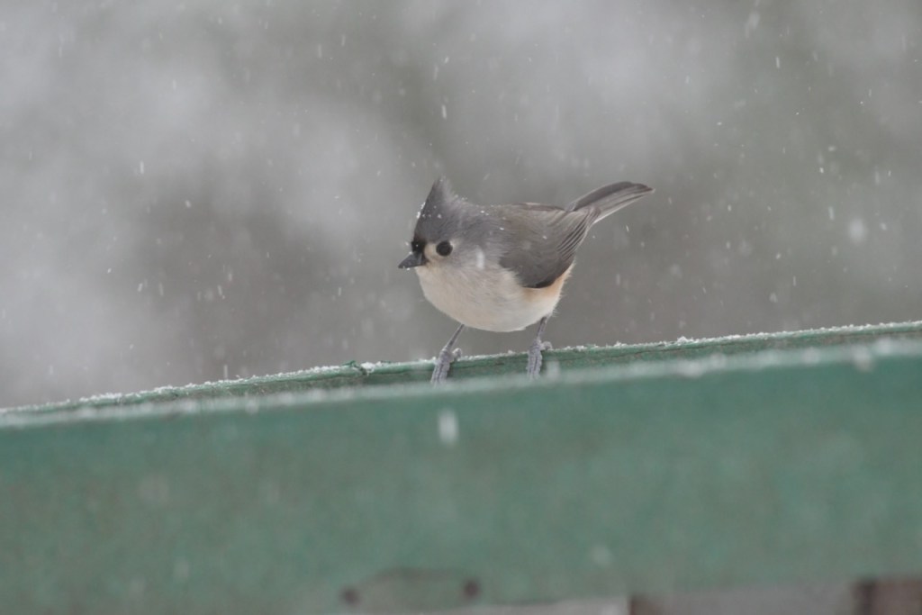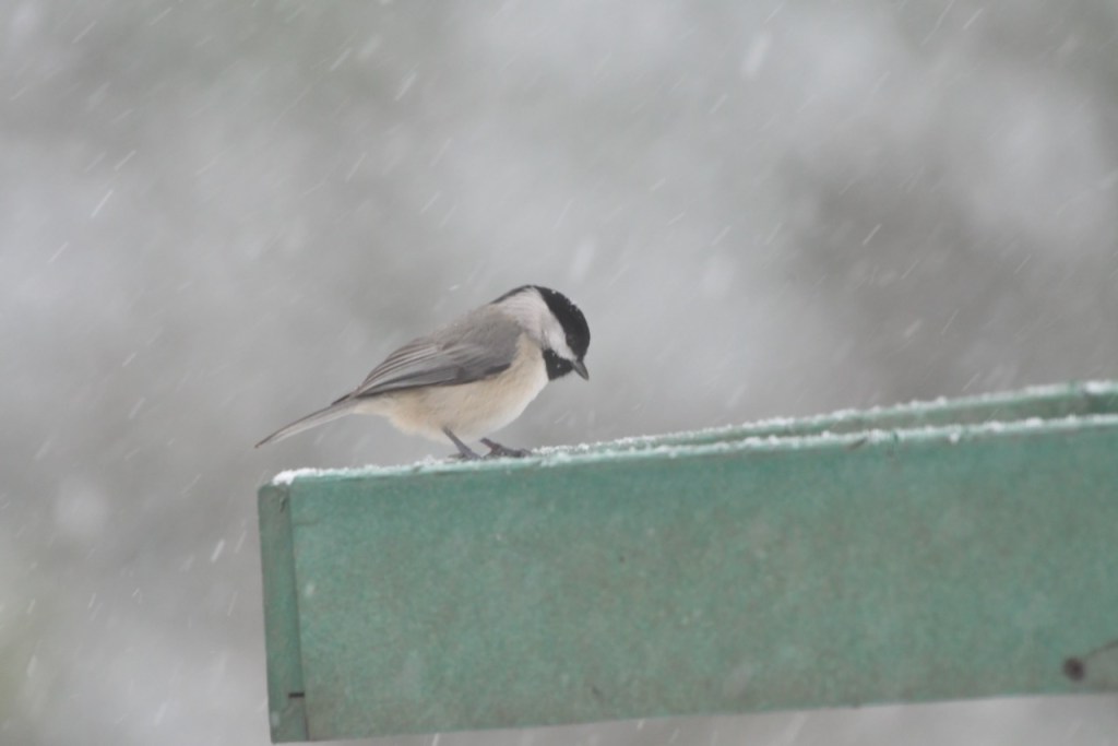 The snow did not stop the birds from visiting my bird feeders. The water in the creek did not freeze even though the temps were below freezing so the birds were able to drink and bathe.