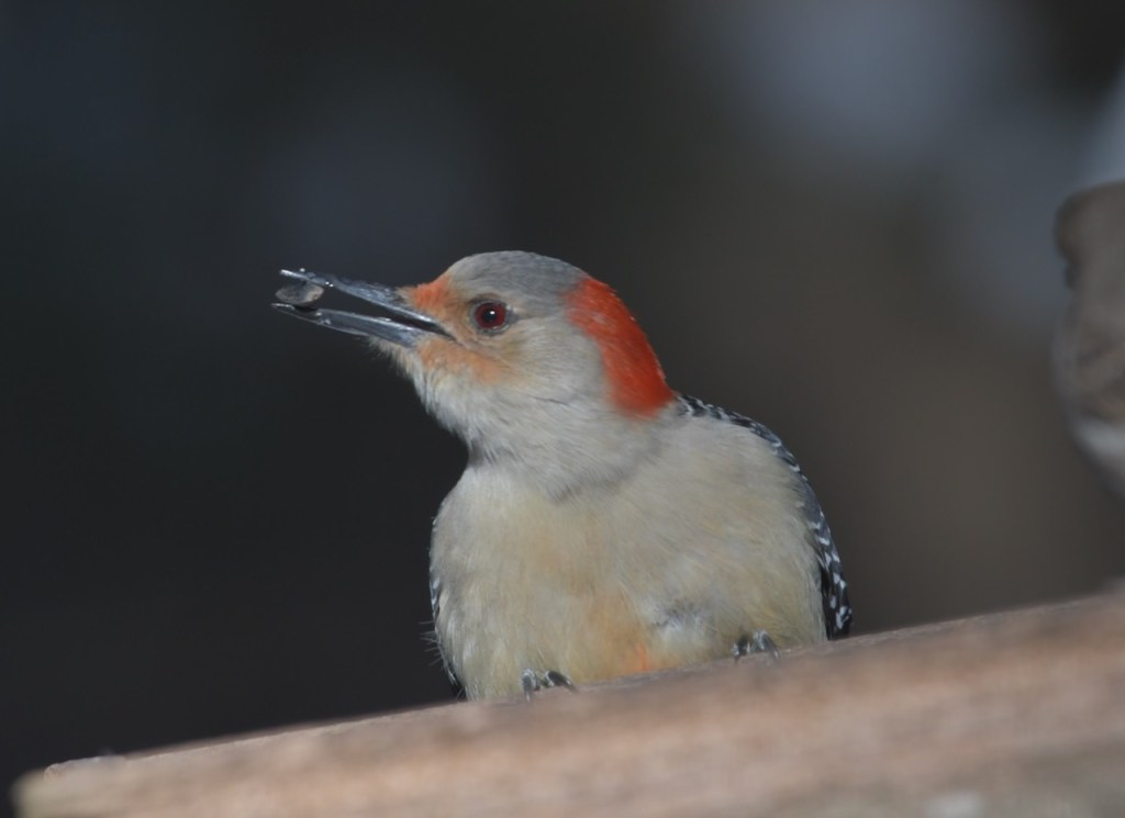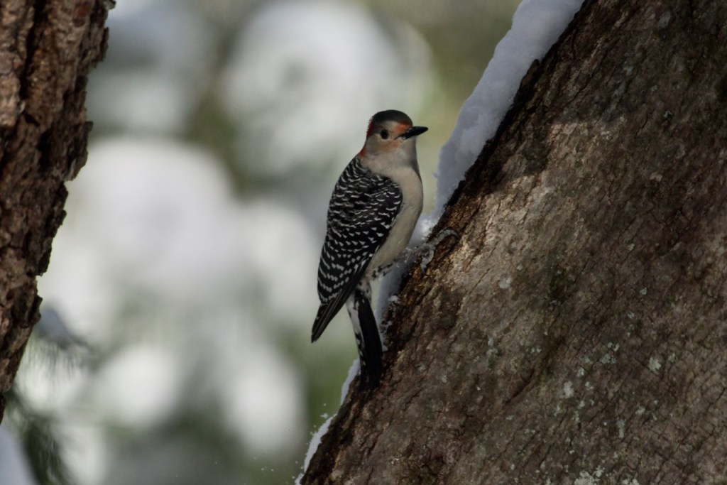 The female Red-bellied Woodpecker have a red nape, lacking the red crown. This is a female. https://www.allaboutbirds.org/guide/Red-bellied_Woodpecker/id