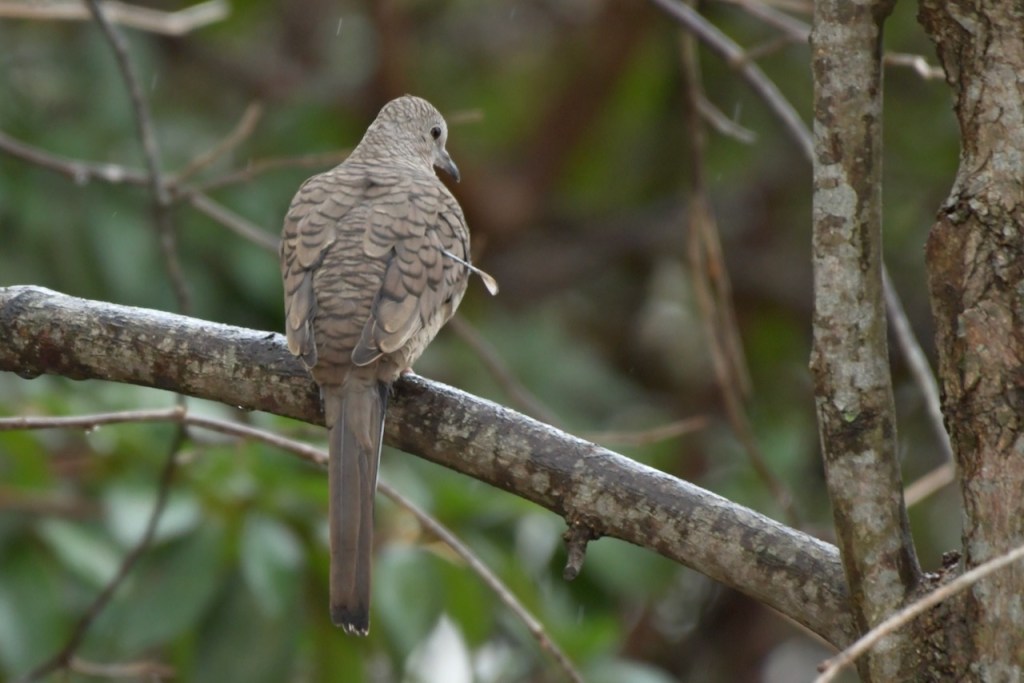 These Inca Doves were spotted at the paradise yard for birds in Foley. They are easy to identify from their scale like features. They are small doves.