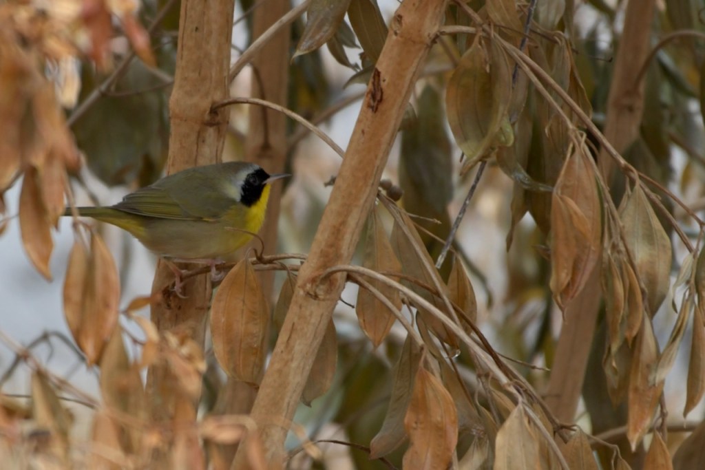 You usually don’t find Common Yellowthroats in someone’s yard, but this one was eating homemade suet chunks in the bird paradise yard in Foley. It was very hard to spot because it blended in with the dead foliage from the snow days.