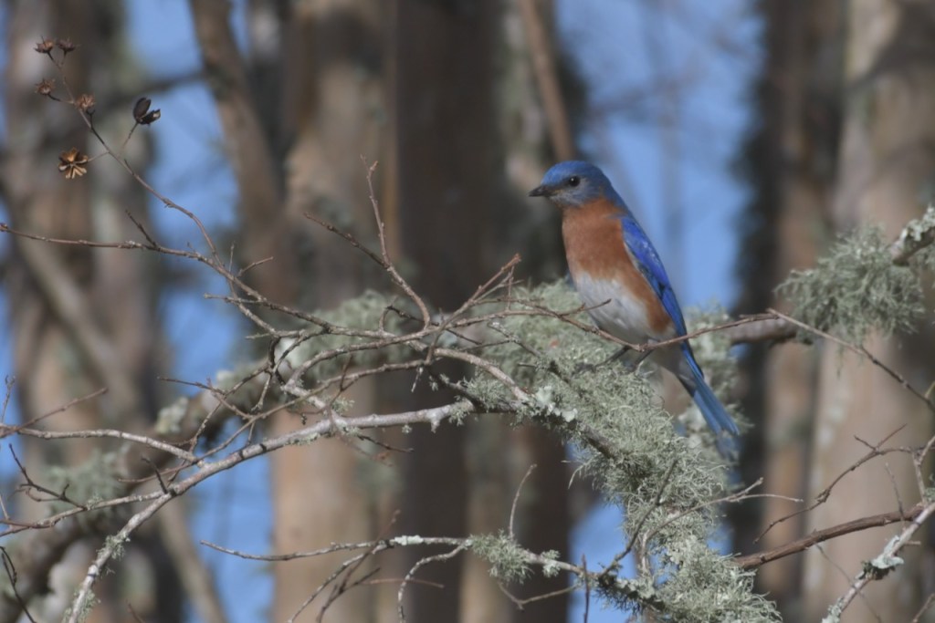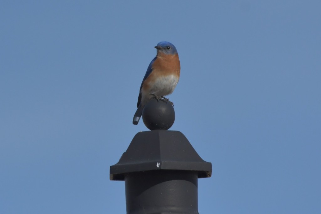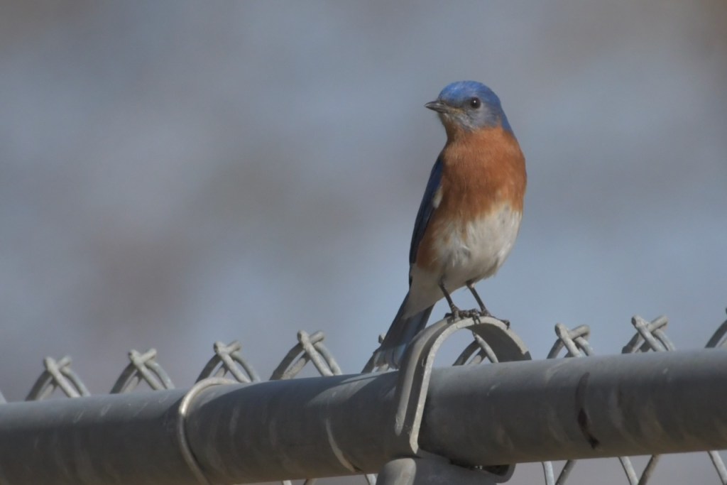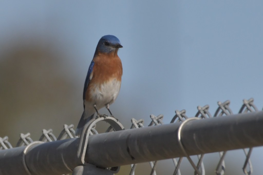 The Foley Sports Complex is a good place to look for birds. There is something about a field of grass with a fence around it that birds seem to like. On this trip, I followed this Eastern Bluebird as it looked for something good to eat.