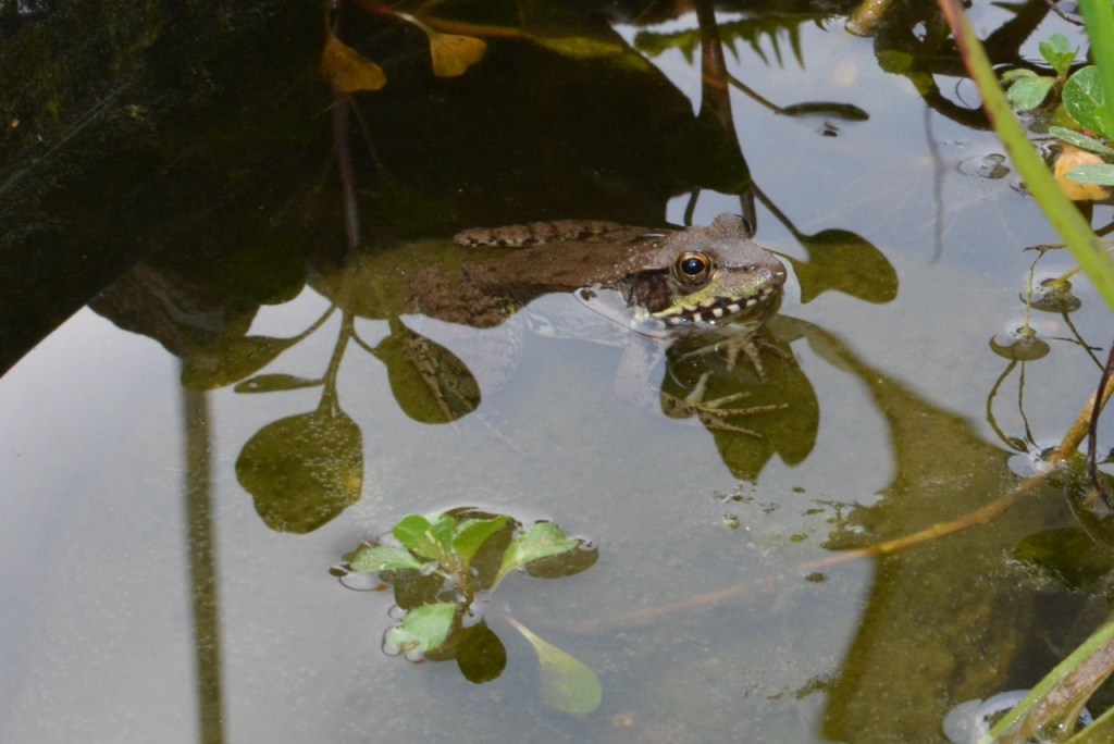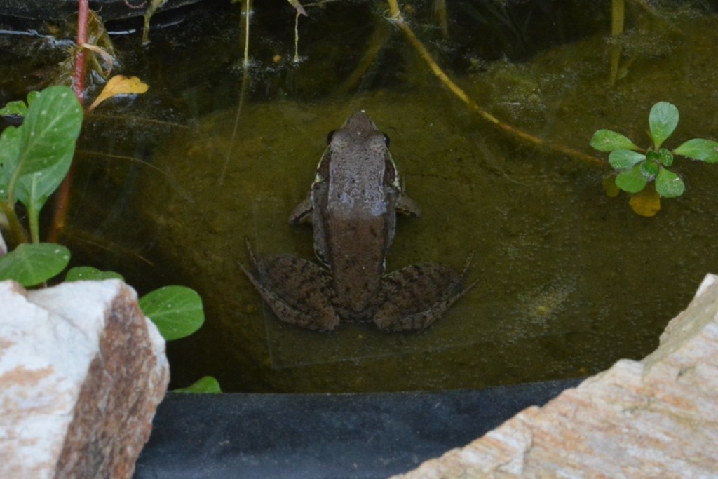 As part of their Alabama Outdoor Classroom project, Stapleton School built a frog pond. I was on campus the other day and spotted this Bronze / Green Frog sitting in the pond. The school was told that if they built a pond, a frog would show up and it did.