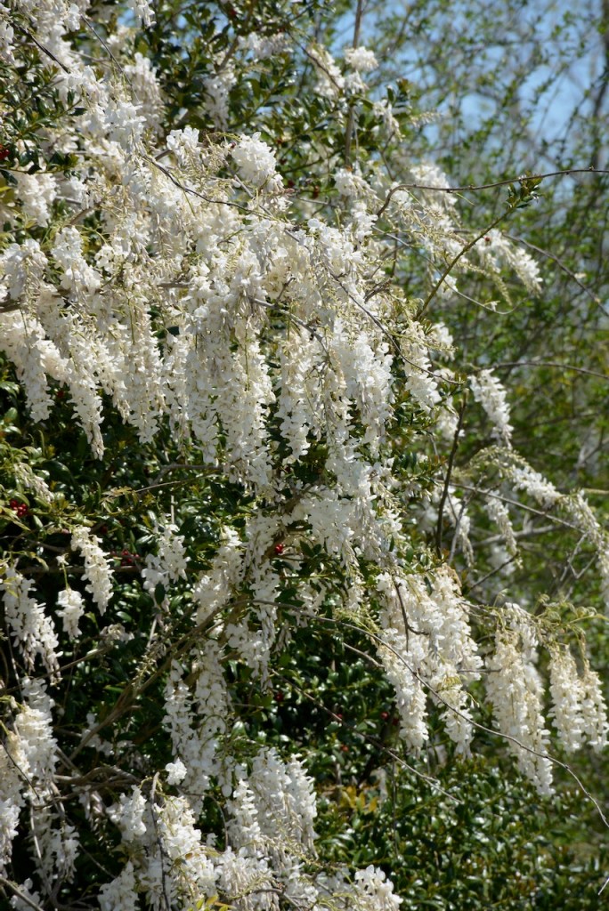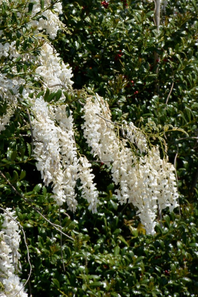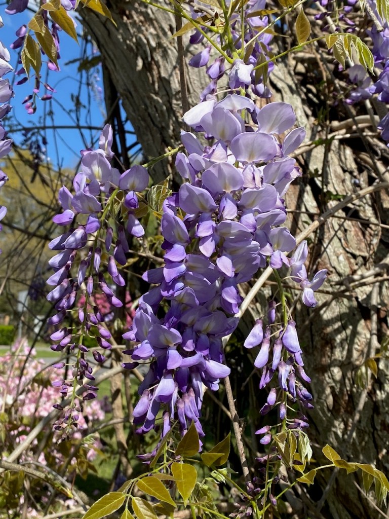 Since these Wisteria vines were spotted in someone’s yard, I took the photo from my car window. Even from the car I could smell the sweet scent.