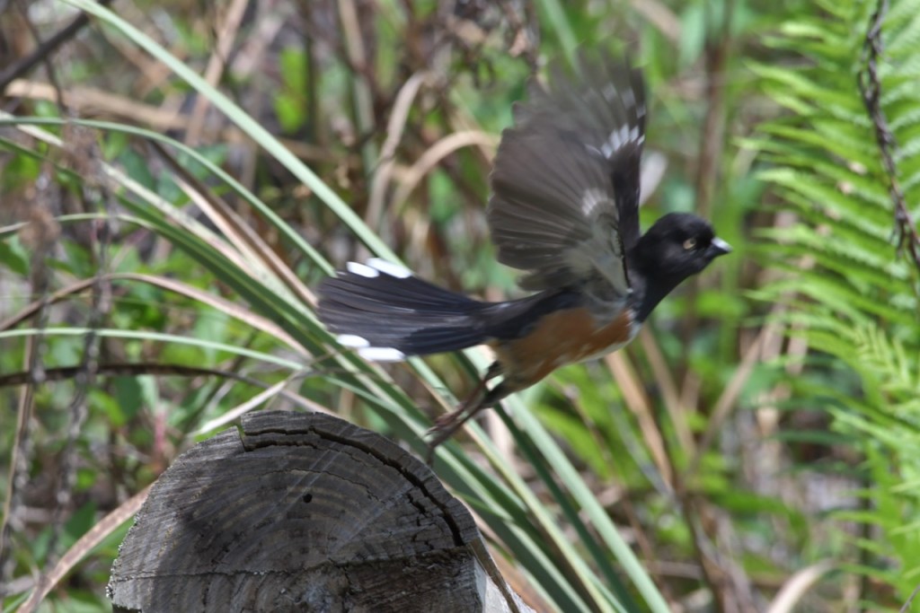 I was watching a female Eastern Towhee moving around in the undergrowth when this male Eastern Towhee flew in on the opposite side of the boardwalk at Gulf State Park. It stayed within my view for a few photos before flying off again.