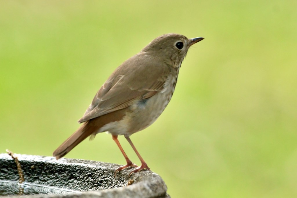 It is not common for me to see a Hermit Thrush in my yard, but this year, I’ve seen one twice. Both times it was near the water; in the creek and in the bird bath.