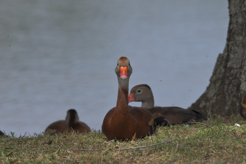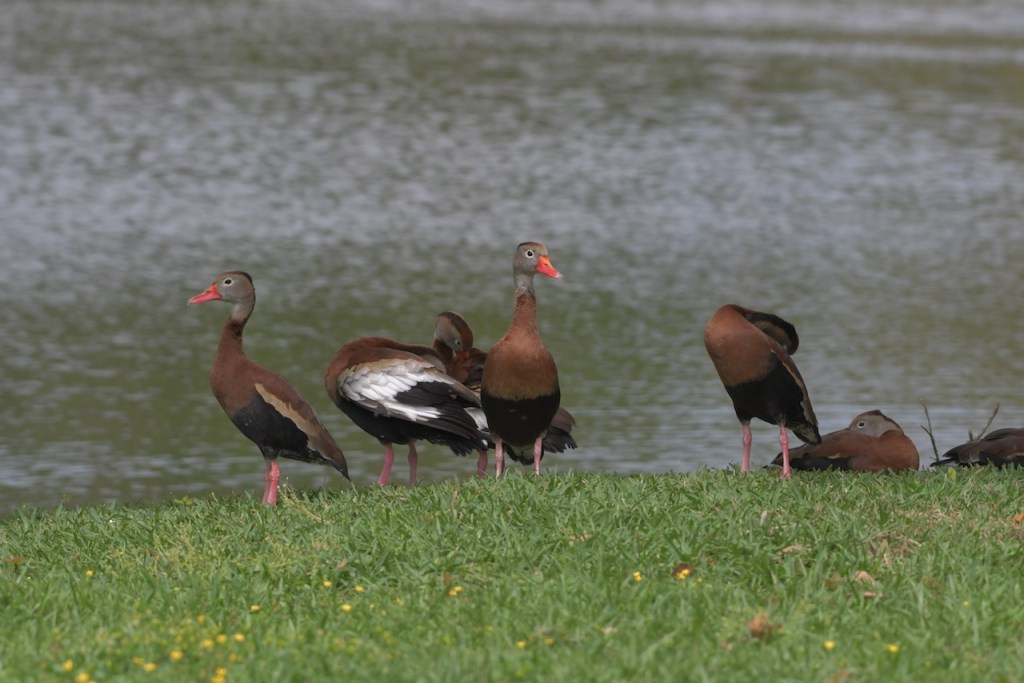 When driving back from Gulf Shores, I always like to ride through the golf course to see if there are any ducks on the lake. I spotted these Black-bellied Whistling Ducks resting on the bank.