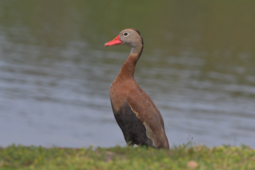 The black-bellied whistling duck is sometimes described as part goose and part duck, because of its rather peculiar physical features and behaviors. Like many goose species, black-bellied whistling ducks graze on grasses in upland areas, but they also nest in tree cavities similar to wood ducks. This species is highly gregarious, adaptable to using urban areas and highly recognizable due to its pink bill and legs. https://www.fws.gov/species/black-bellied-whistling-duck-dendrocygna-autumnalis