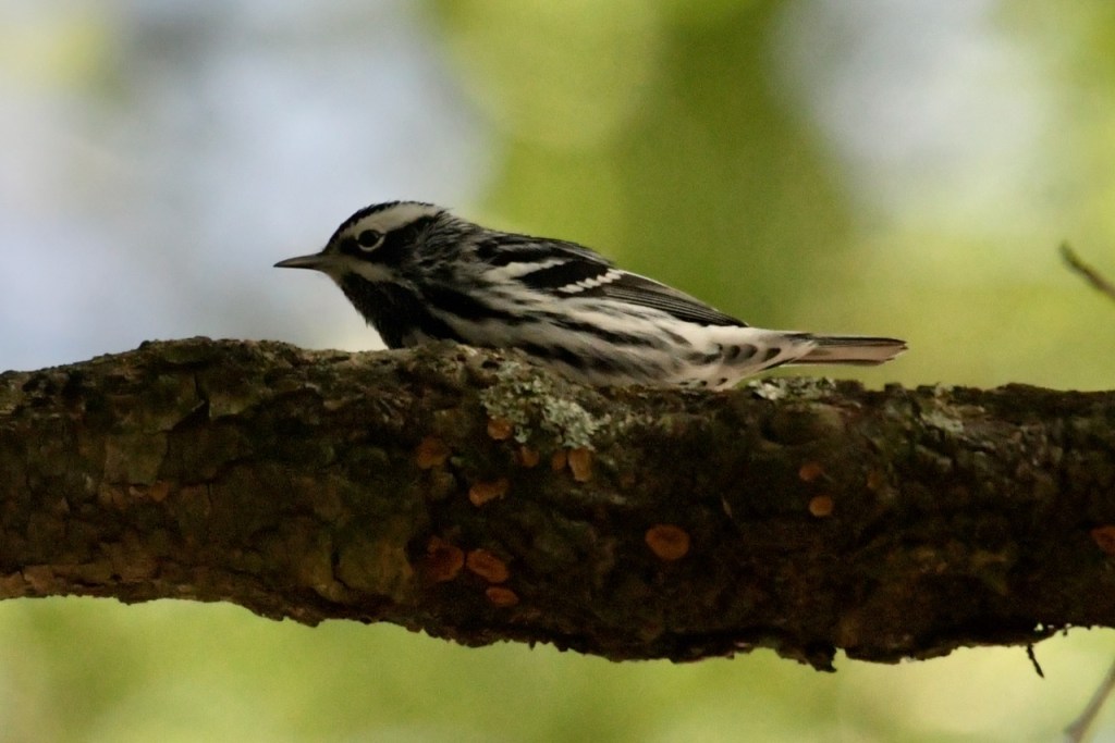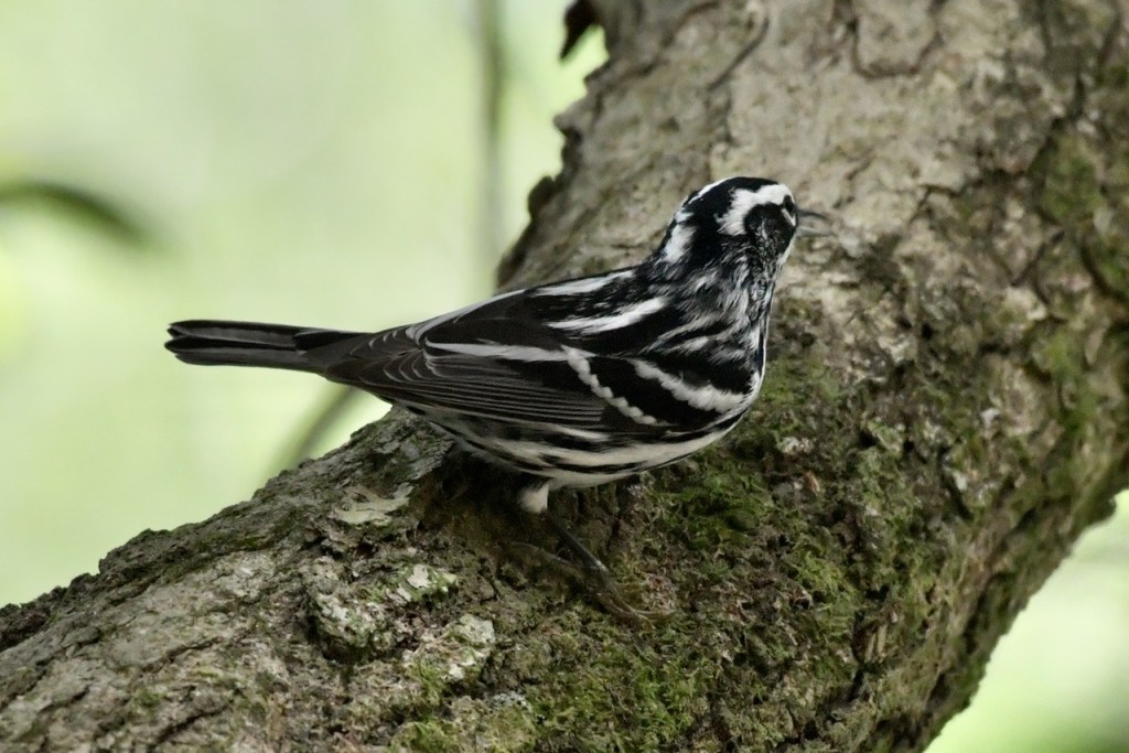 This is probably the 4th time in 30 years that I have spotted a Black and White Warbler in my yard. They do not come to my feeders. They stay on the trees and move around very quickly. If I hadn’t been sitting under the tree when I saw this one, I doubt I could have taken so many photos.