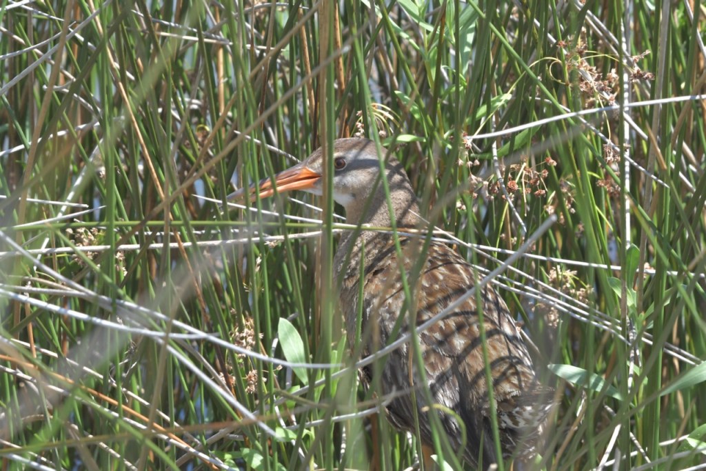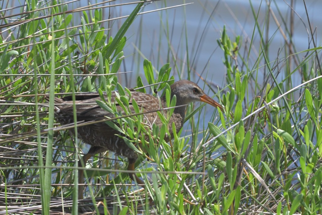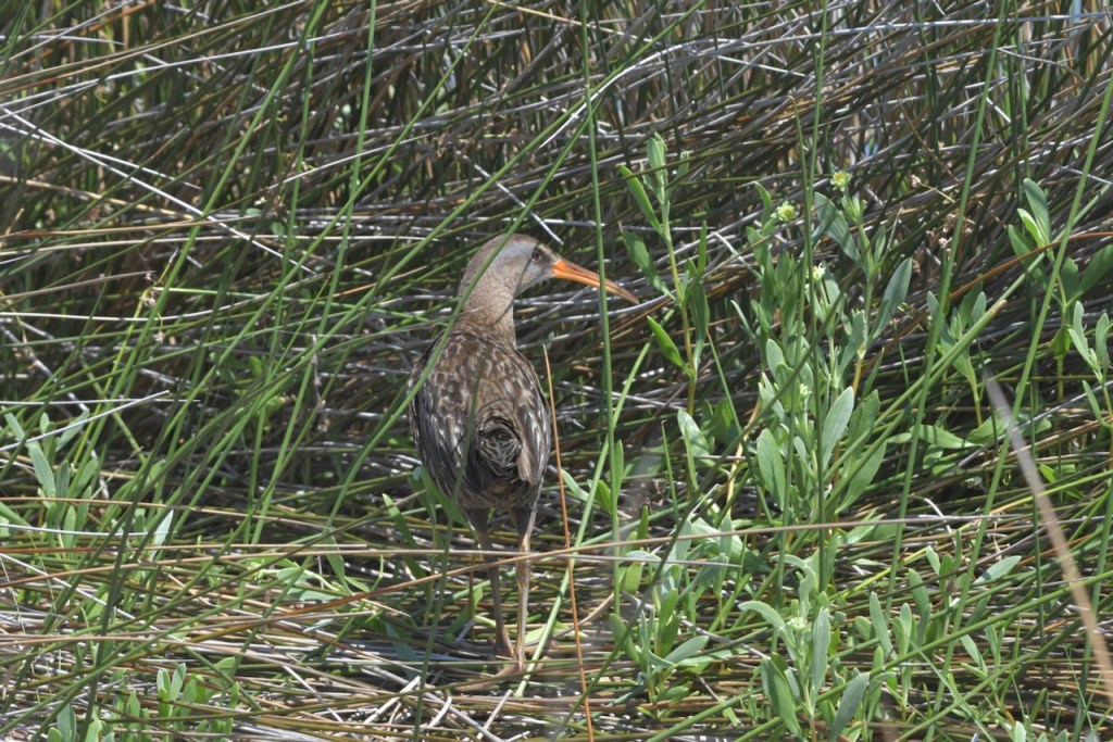 I could hear the Clapper Rails calling at the Dauphin Island pond, but didn’t expect to see one. They are good at hiding. I was only able to find this one because it started walking around in the flattened grass area beside the road.