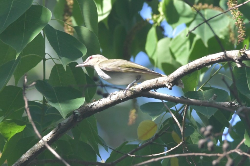 While birding in my backyard, I spotted 2 rare visitors: a Red-eyed Vireo and Great Crested Flycatcher. Since I haven’t seen them in my yard in a long time, it was lucky that I saw them on this visit.