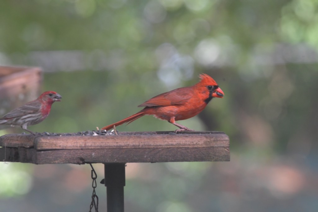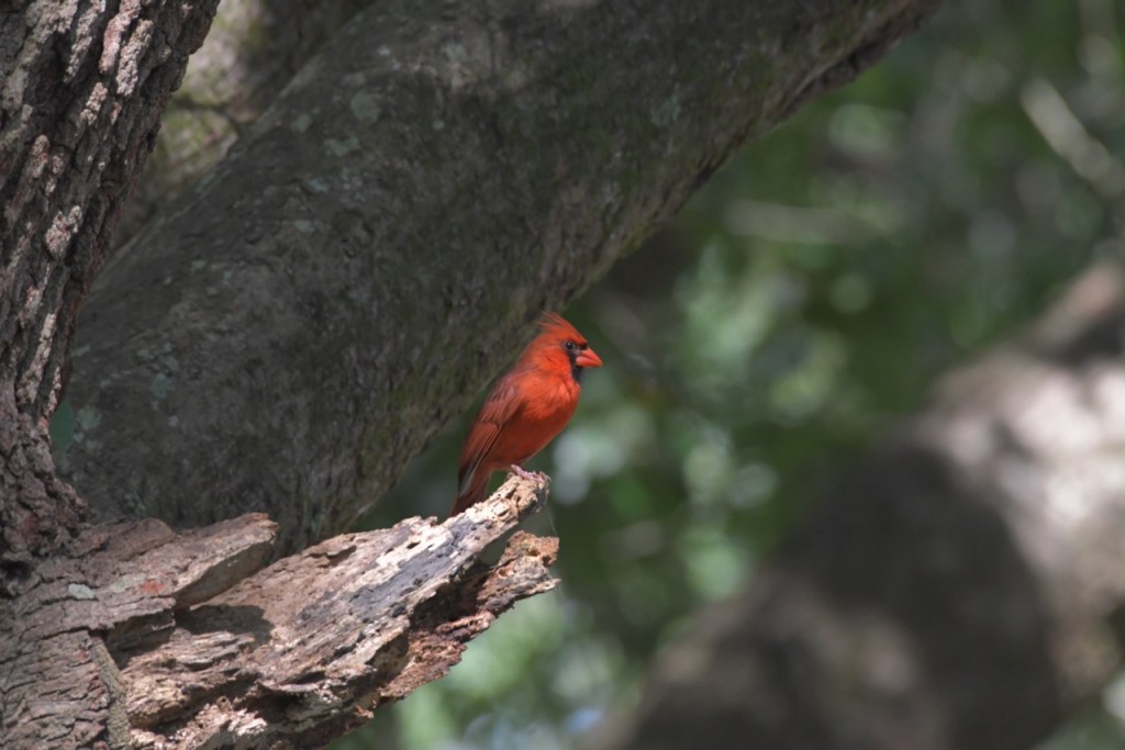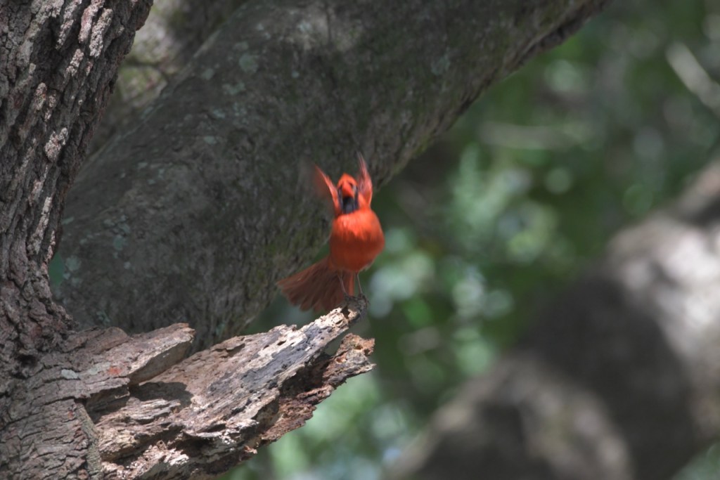 Northern Cardinals are always a happy sight. They are beautiful birds and a lot of people feel seeing them is a visit from a deceased loved one. I am blessed with seeing lots of them everyday in my yard and at my feeders. The broken branch on this tree is a waiting area for the feeders. The birds fly back and forth and give me some great opportunities to take photos.