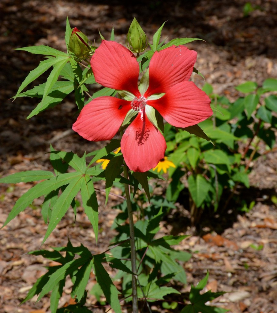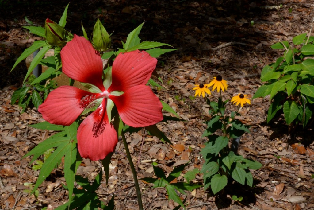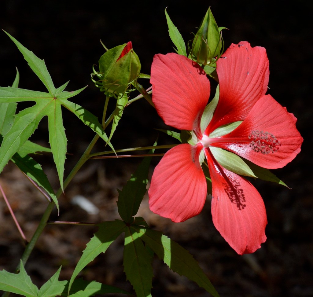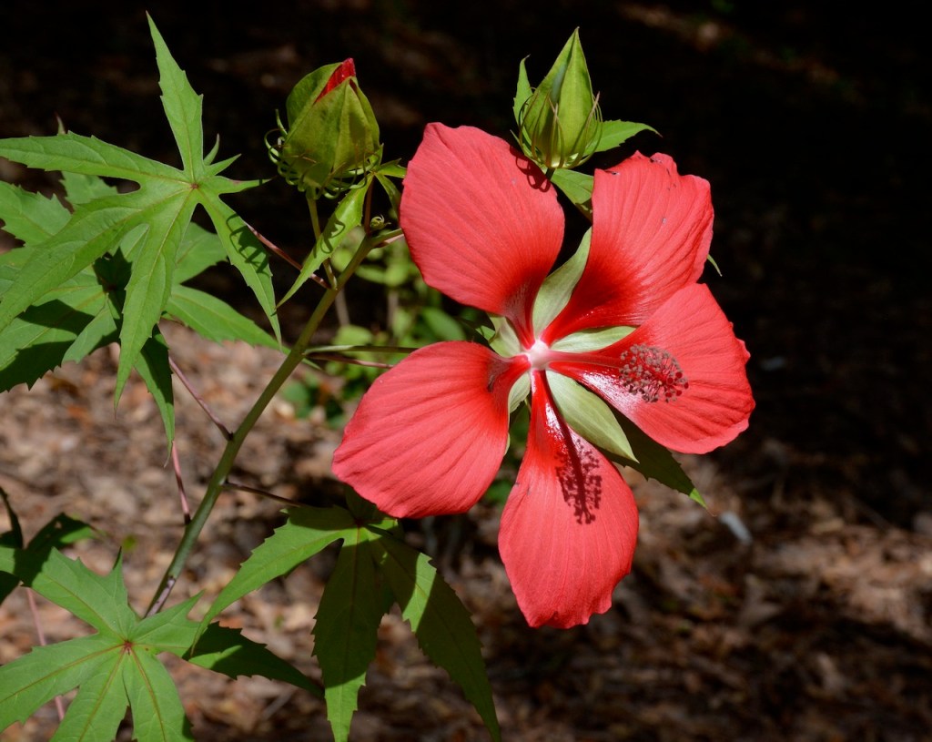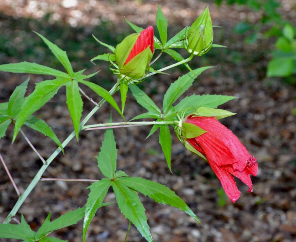 My neighbor used to have one of these flowers in his garden. When I saw this at the Master Gardener’s Plant Sale at Weeks Bay, I had to buy it. It did not bloom until this year. I noticed the bloom this morning and then after the heavy rain, the bloom had closed. Hopefully the other two buds will open tomorrow.