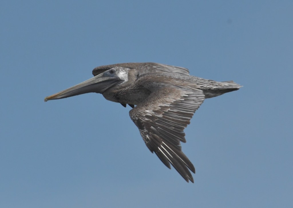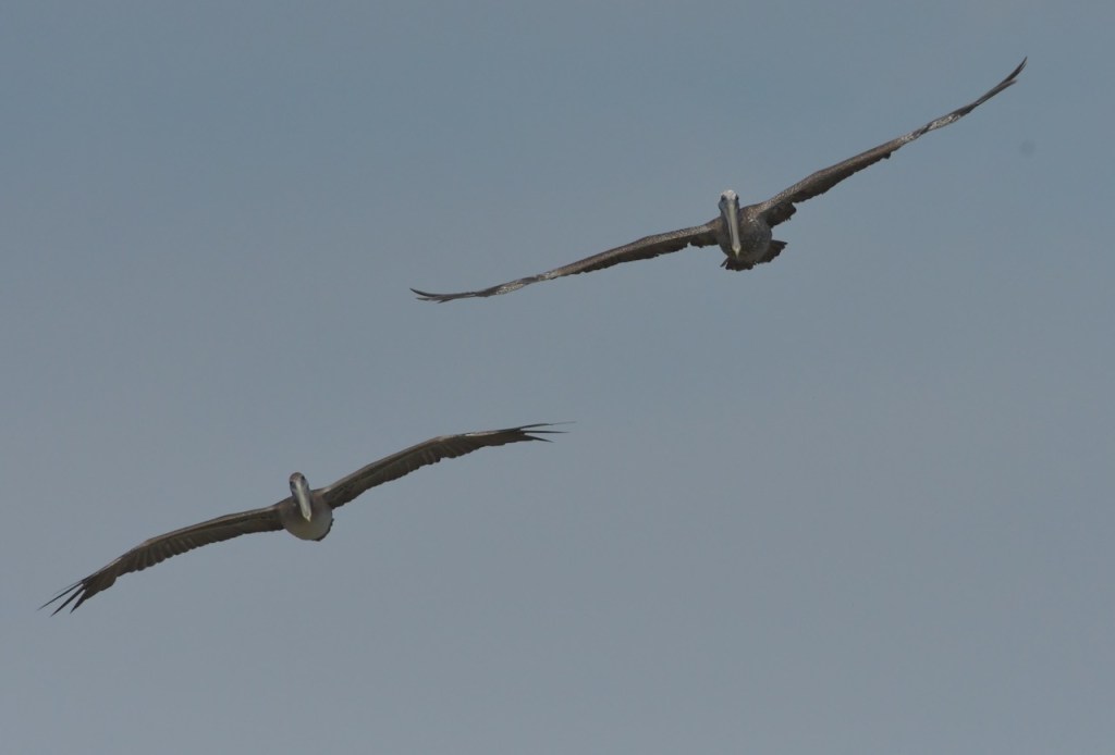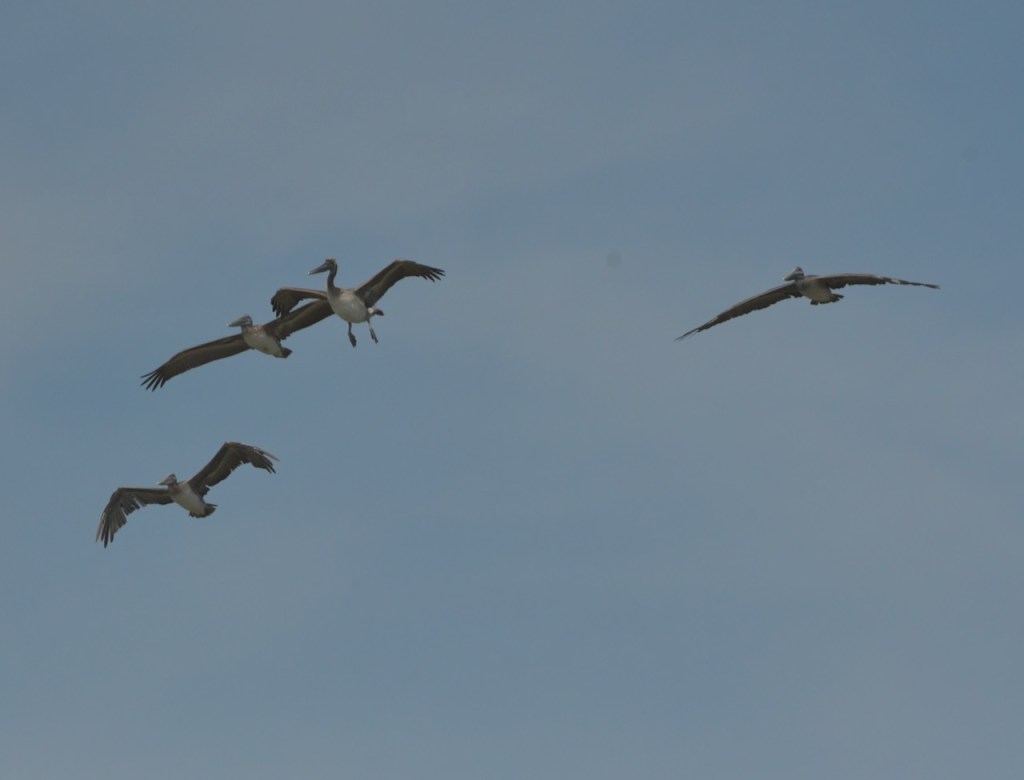 While standing on the Fairhope Municipal Pier, you can watch the Brown Pelicans fly in, over, and around the pier. They fly down to fish or sit on a post. A flock of pelicans is known by many names, including a bunch, fleet, herd, pod, pouch, raft, rookery, scoop, or squadron.