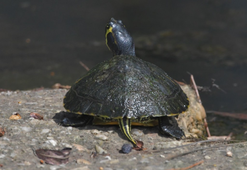 Driving by the stream beside the Fairhope Municipal Pier beach, you can usually spot some Yellow-bellied Slider Turtles. You have to look carefully to spot their heads sticking up in the water.