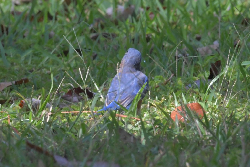 I noticed 2 or 3 Eastern Bluebirds flying down from the trees in Fairhope Municipal Pier Park and just hovering over the ground for a minute or two before landing on the ground. I’m not sure if they were defending their territory or looking for insects.