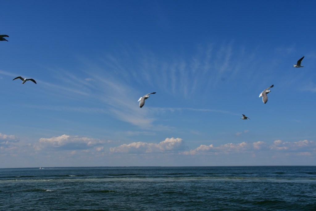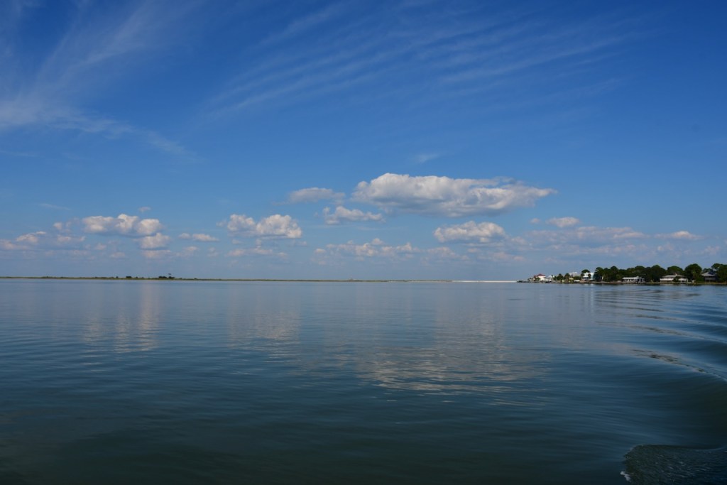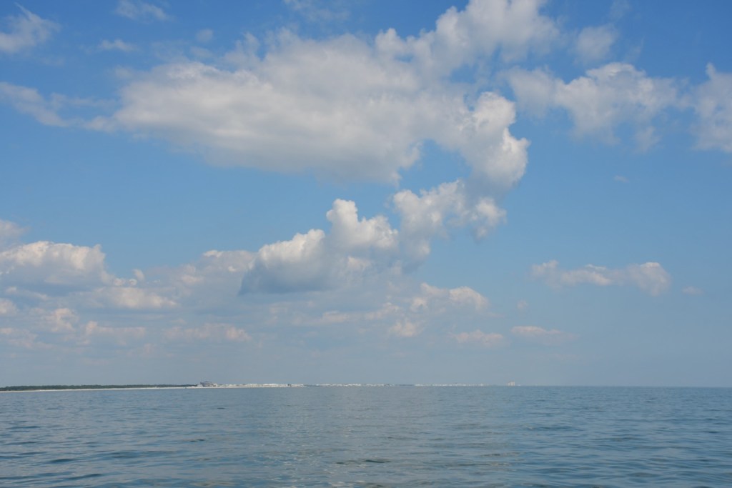The Duke out of Dauphin Island Marina is the only boat tour I’ve found that will take you out to see Sand Island Lighthouse. The trip takes about an hour one way. Once you are away from the island, the main scenery is the clouds upon the water and other boats traveling by. We did see an occasional dolphin pod and sea birds.