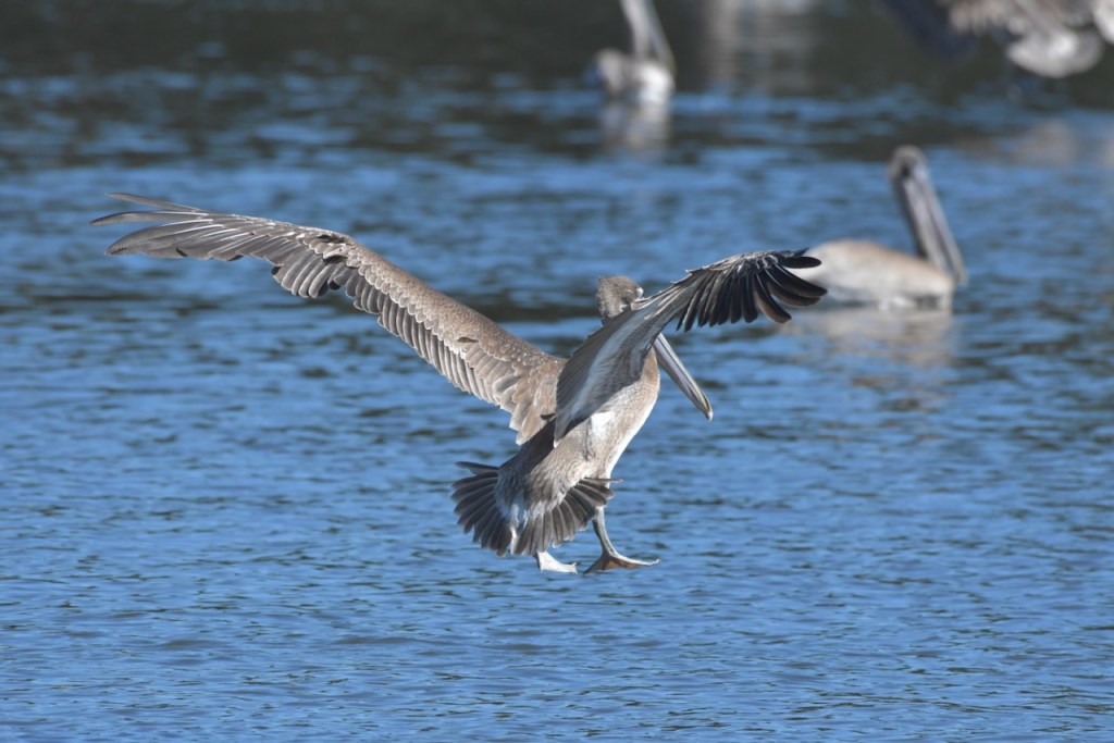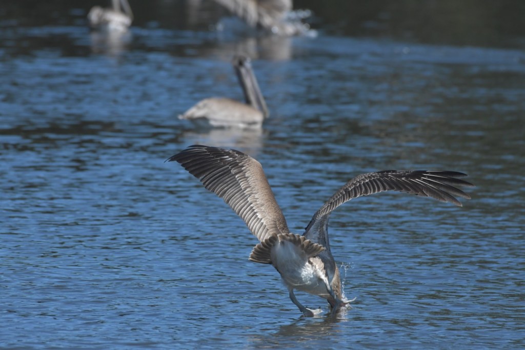 I’m not sure if the water was too shallow or the Brown Pelicans just didn’t feel like diving, but all of the ones that I watched made soft landings on the water and then dunked their bills to catch a fish. When at the beach, most of them will make high dives into the water to catch fish. Maybe it is the difference of fresh water to salt water. Either way, it is fun to watch.