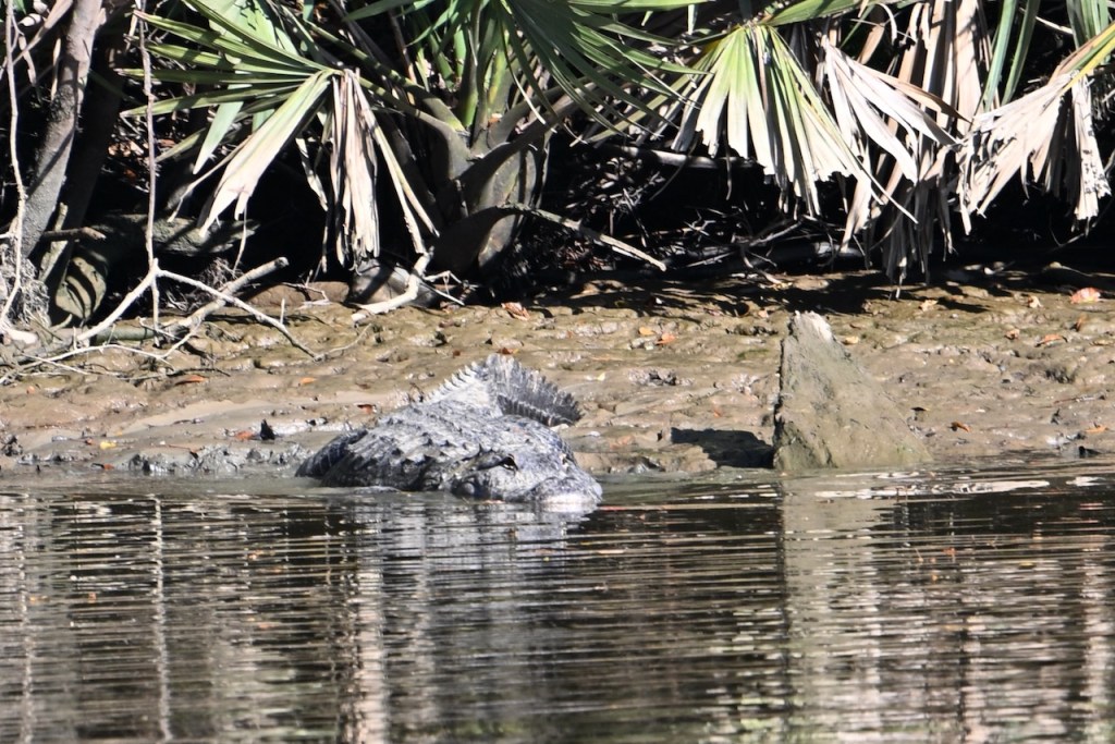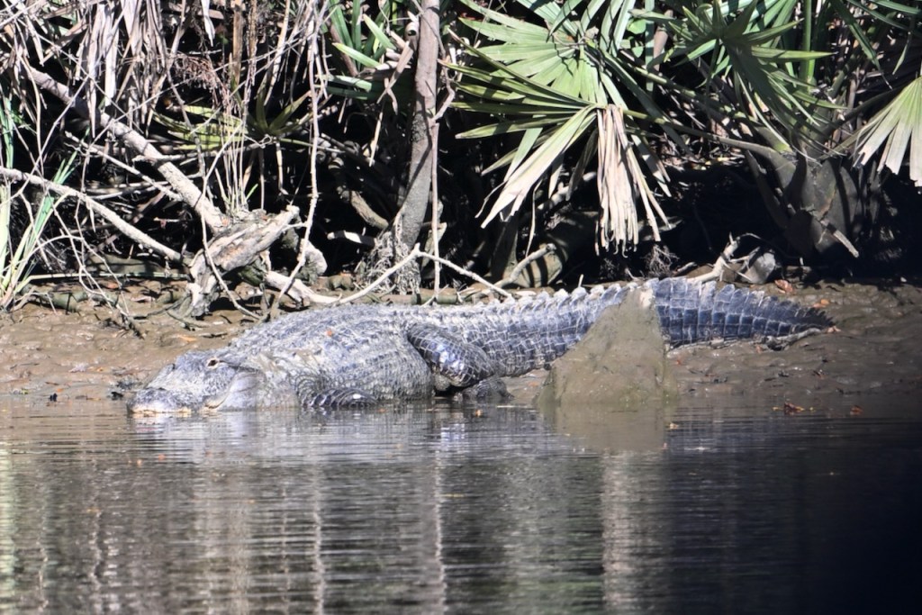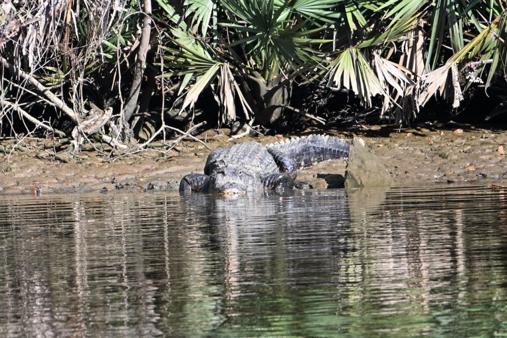 On our Historic Blakeley boat tour to Bottle Creek Shell Mounds we spotted an American Alligator sunning itself on the banks. The temperature was in the 70’s so it is still warm enough for them to be out. The tour guide said that this one is at least 12 feet long.