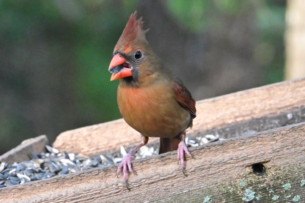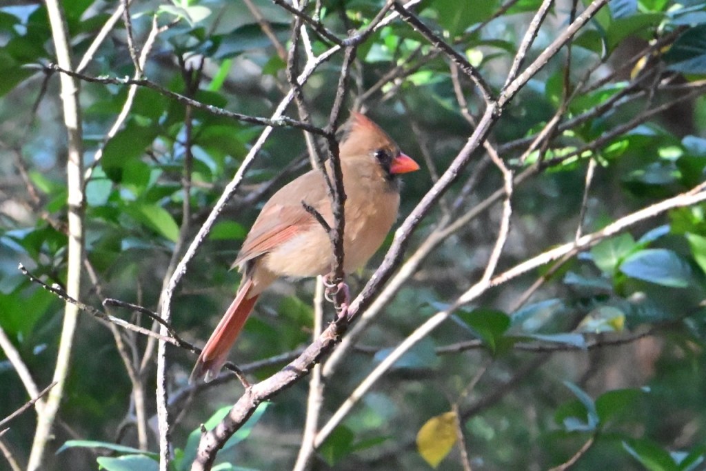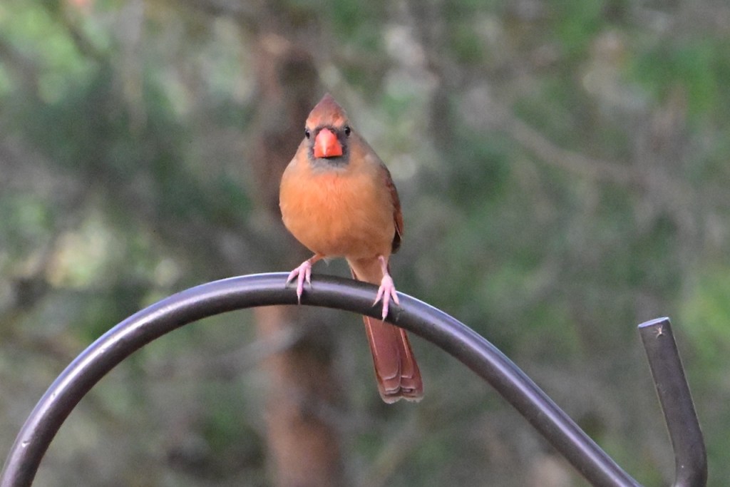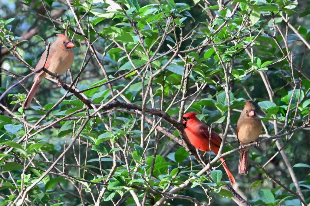 Why go out in the freezing cold when I can sit in my den and watch birds visiting my feeders. These Northern Cardinals enjoy the black oil sunflower seeds that I put out. They use the bush as a waiting room and take turns on the feeders. I can sit and watch them fly back and forth throughout the day.