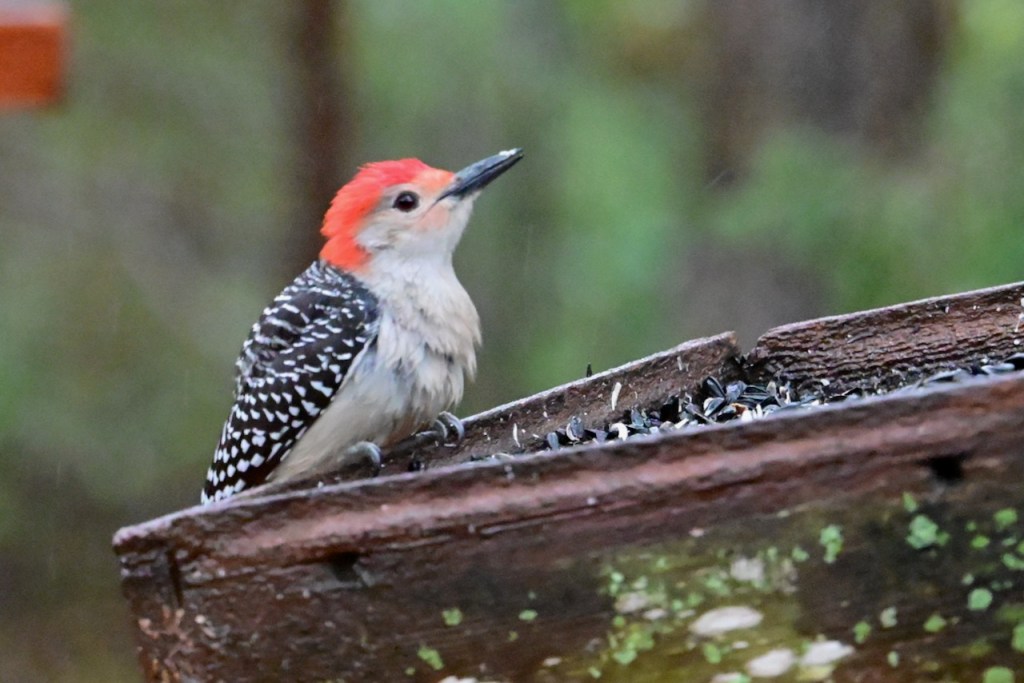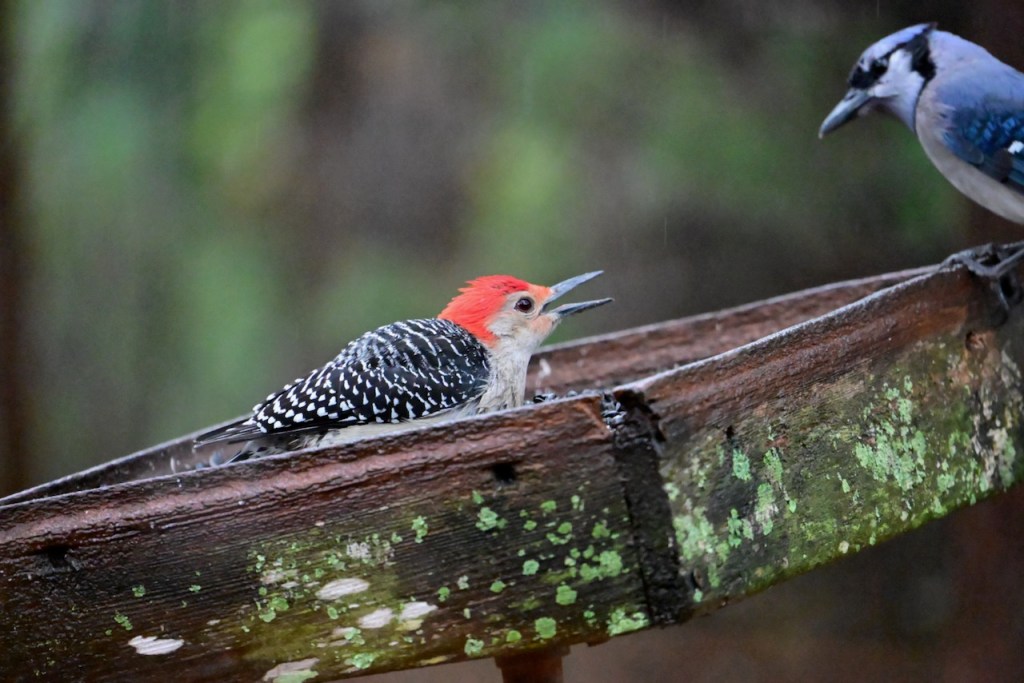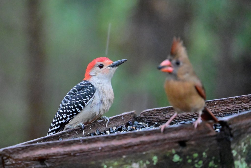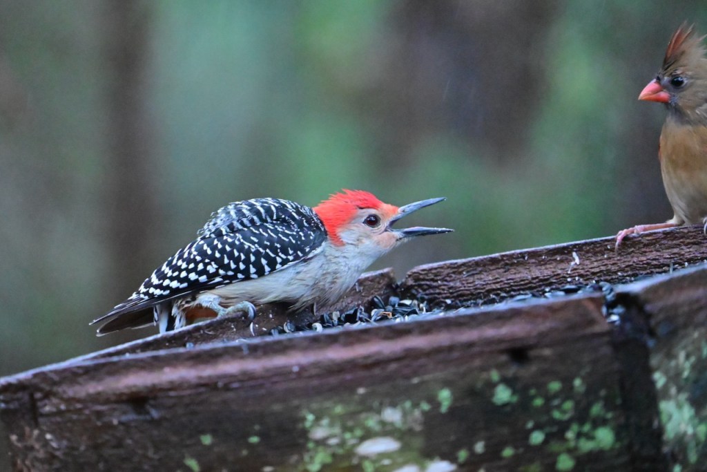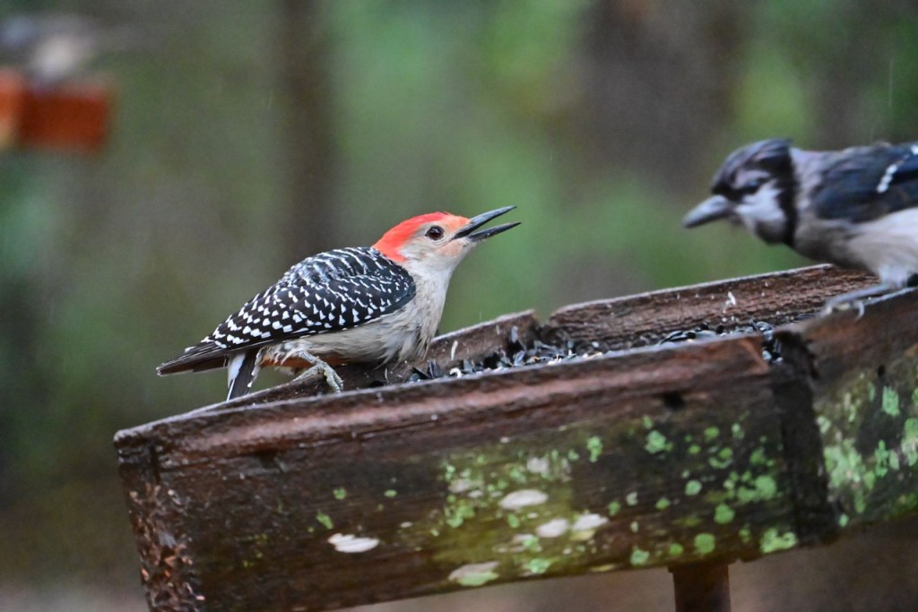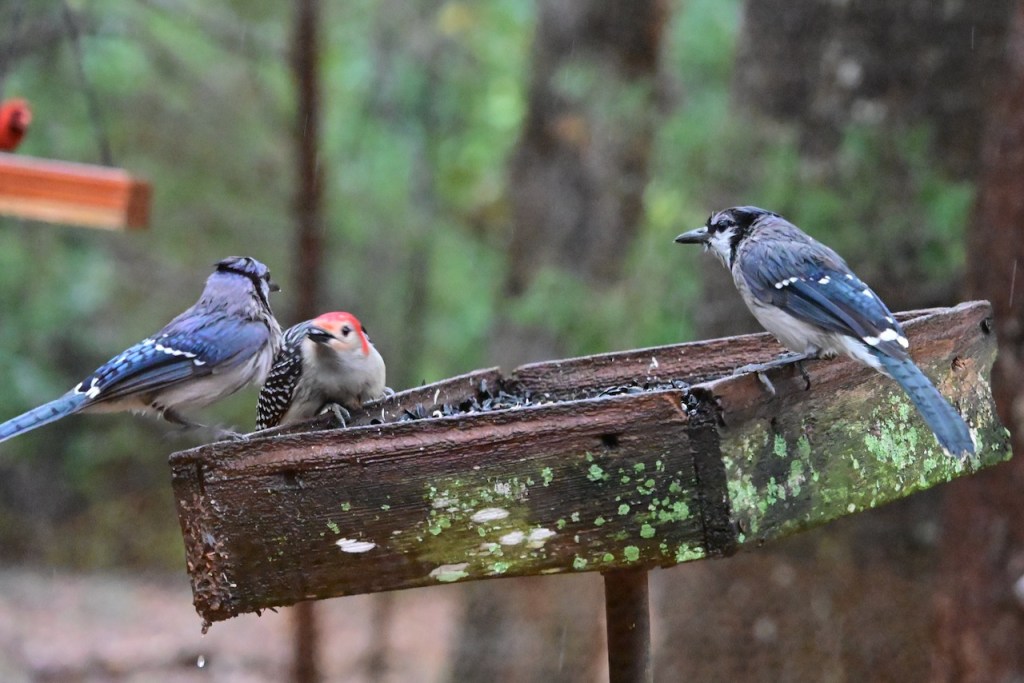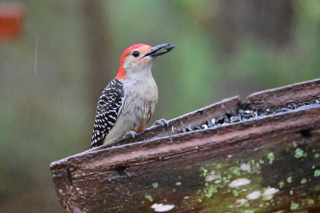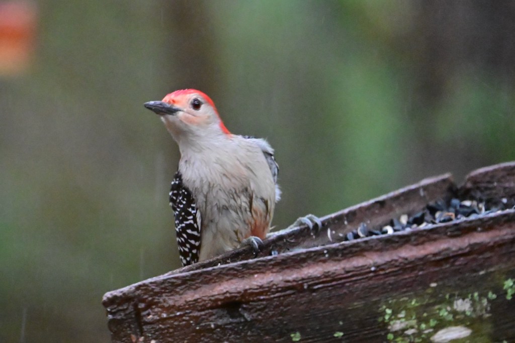 This Red-bellied Woodpecker did not like sharing the feeder with the Northern Cardinals and Blue Jays. As soon as it flew to the feeder, it would chase away all the other birds. The rain did not keep them away. My feeders had steady visitors all day.