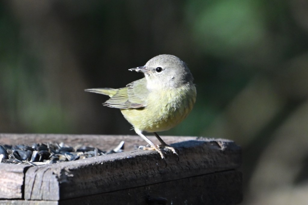 While getting ready to install my new bird feeder in the backyard, I had so many birds on the older feeders that I had to stop and take some photos. This is one reason I always tell myself that I might as well stay home because I see just as many if not more birds in my yard as I see when I drive somewhere else to see birds. I put the new feeder out and it was less than 30 minutes before the Orange-crowned Warbler flew over to eat.