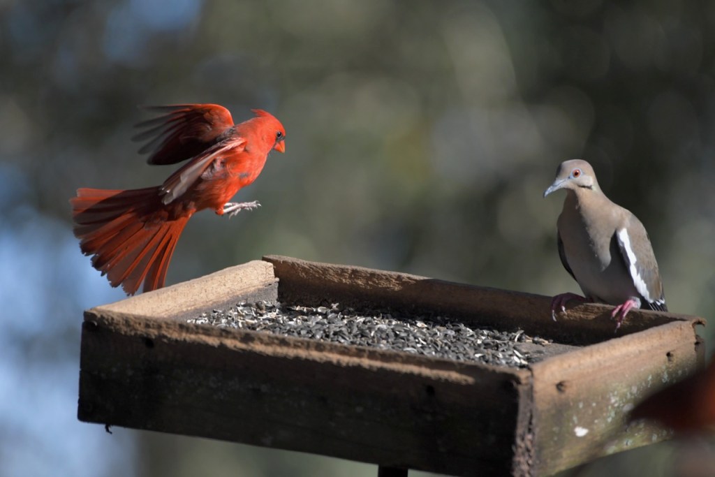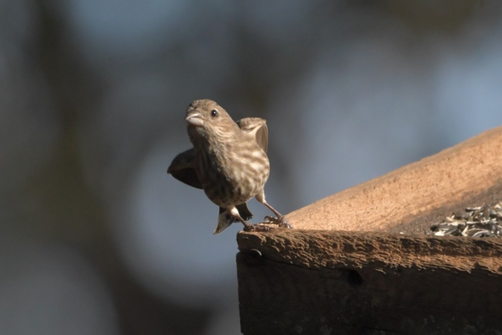 Sometimes the birds do not stay on a feeder long enough for me to get a photograph; they do a touch and go landing. I was able to get a quick photo of these birds as they were lifting off.