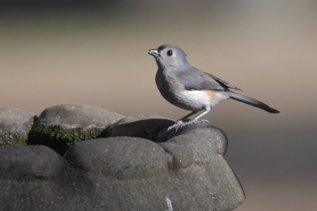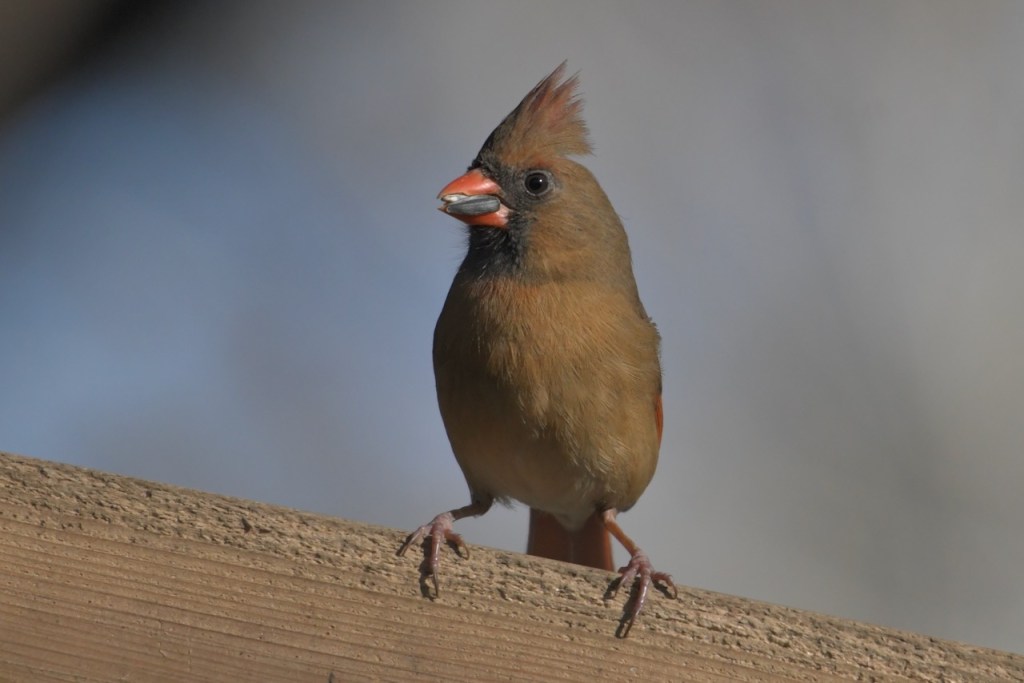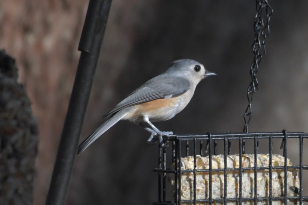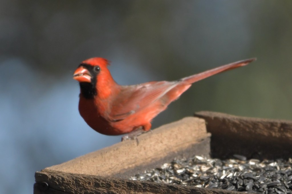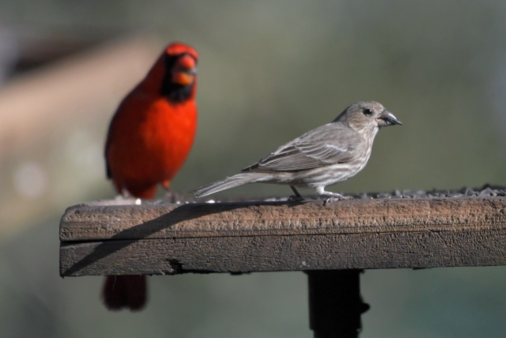 The multitude of birds that visit my feeders exhibit all the colors of the rainbow: red (Northern Cardinal and eye of the White-winged Dove), orange (Orange-crowned Warbler), yellow ( Yellow-rumped and Pine Warbler), green (the Orange-crowned Warbler is olive green), blue (Tufted Titmouse), and purple (House Finch).