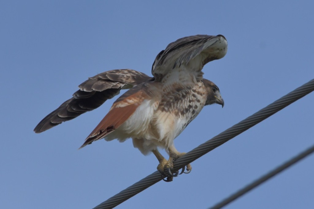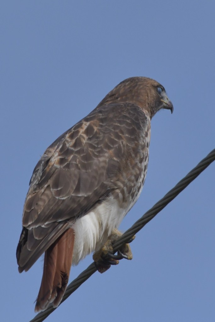 It is easy to see why this hawk is named Red-tailed Hawk. It also makes it easy to identify. During winter months they are easy to spot on electric wires. They are bigger than other hawks.