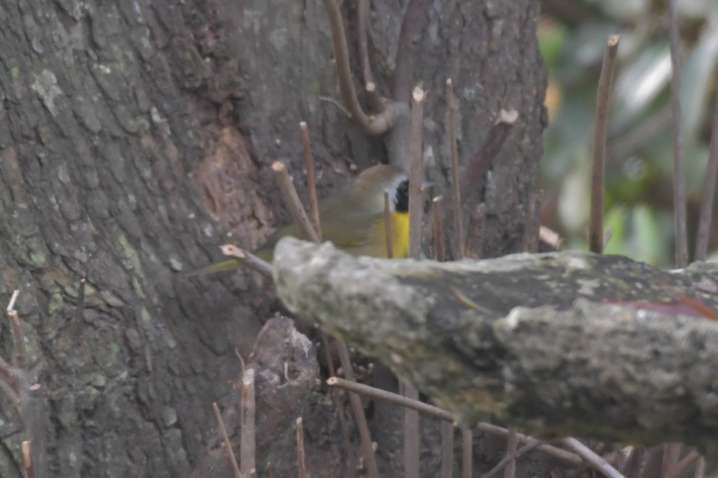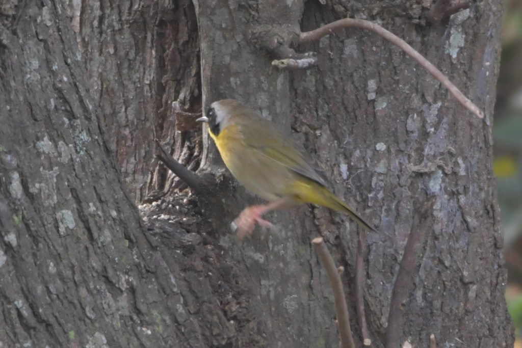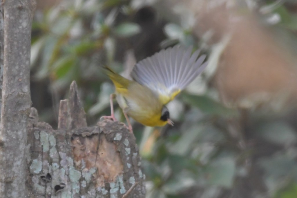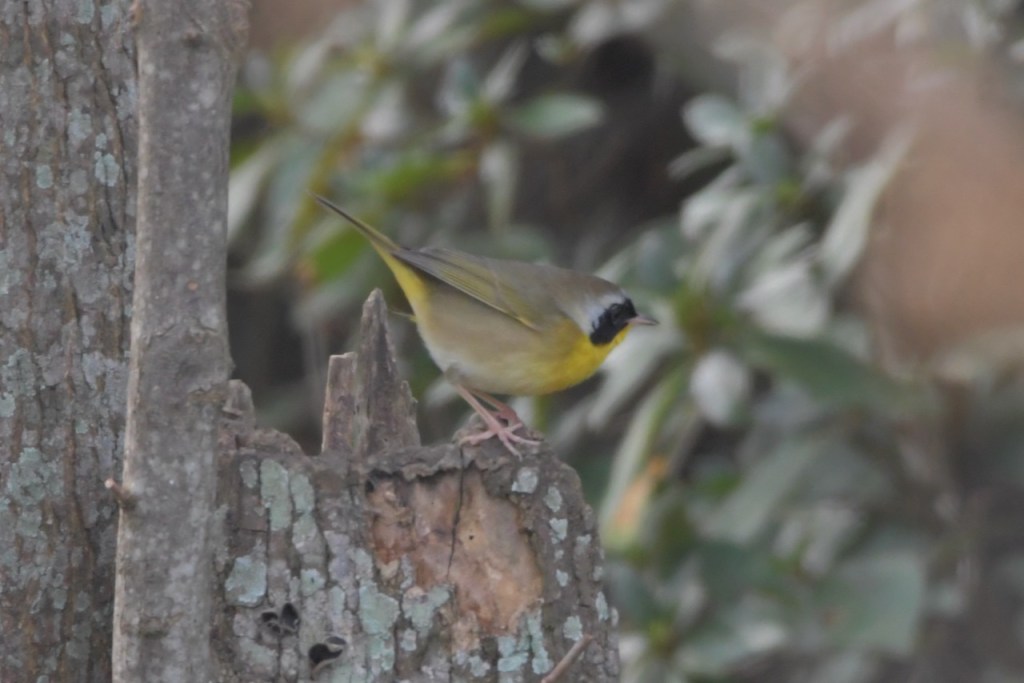 The bright yellow of this Common Yellowthroat caught my eye when I was bird watching on Orchid St. in Foley. It was moving quickly and quickly gone back into the bushes. I had just a few seconds to take these photos. I am always surprised to see it in this person’s yard because it normally likes marshes, wetlands, and brushy fields. This is the second time I’ve seen it in this yard.
