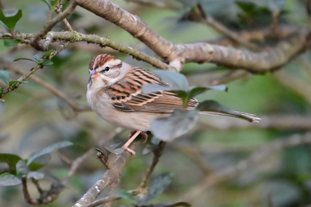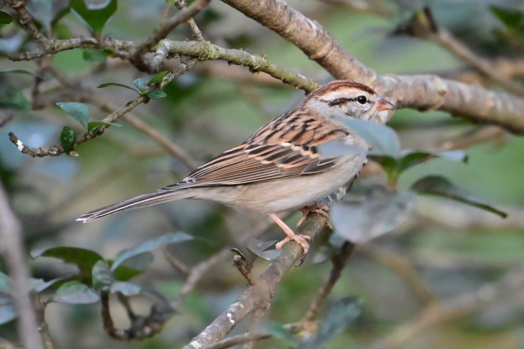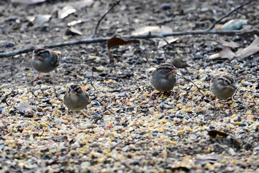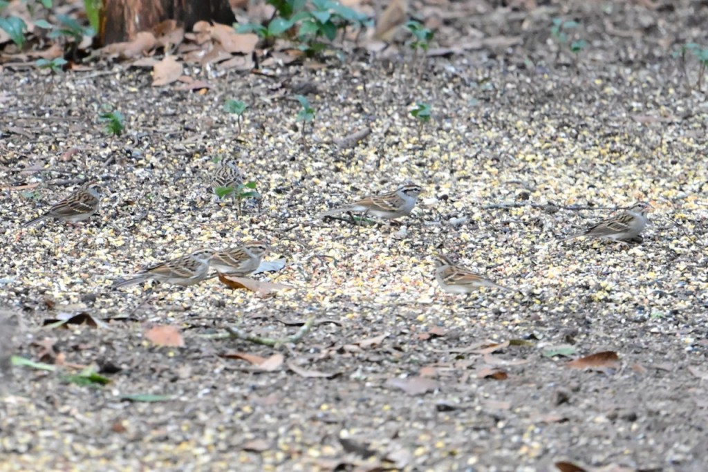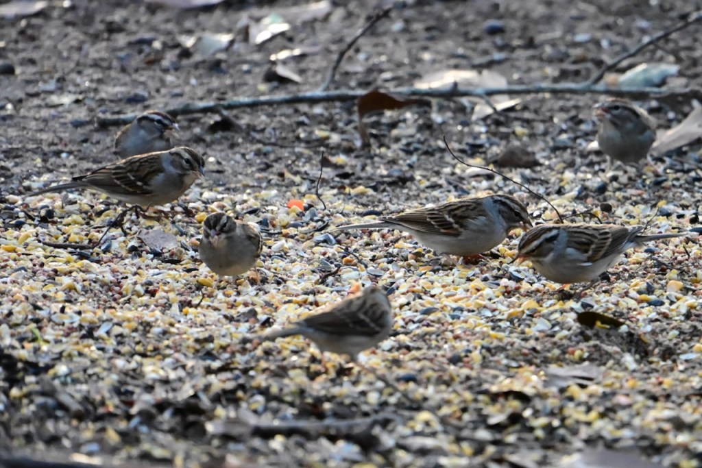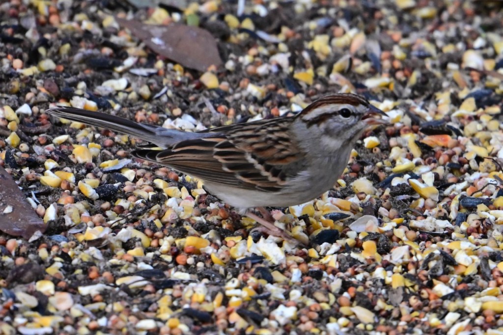Chipping Sparrows appear in my yard during the winter. I’m glad I looked this bird up and listened to its song because I have been hearing a trilling bird sound in my trees and didn’t know which bird was making the sound. Now I know it is the Chipping Sparrow. https://www.allaboutbirds.org/guide/Chipping_Sparrow/sounds