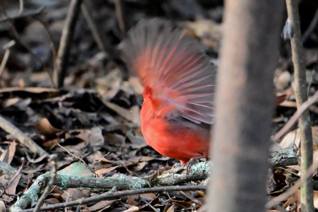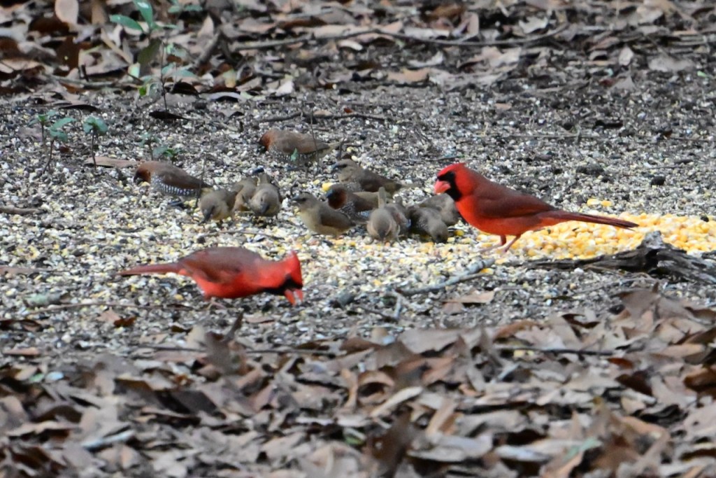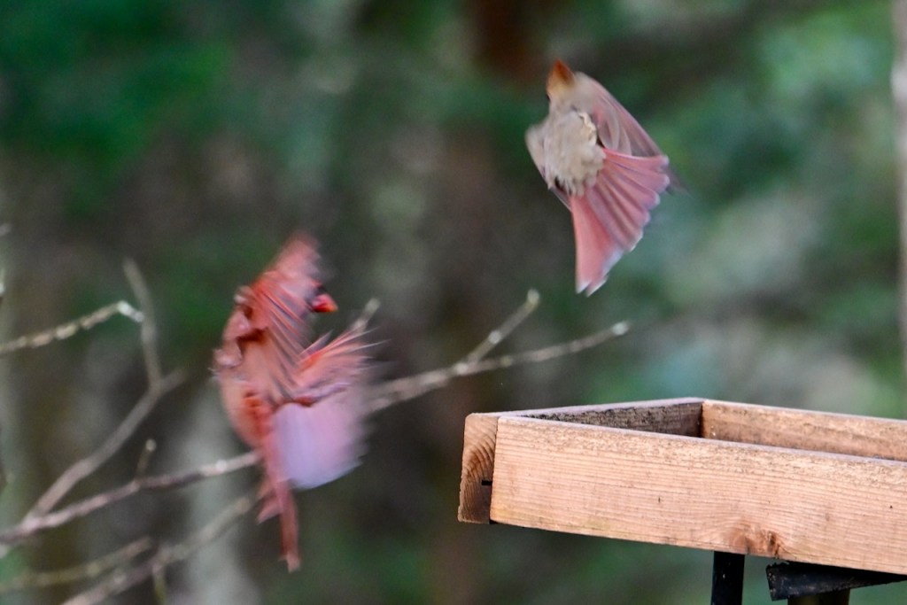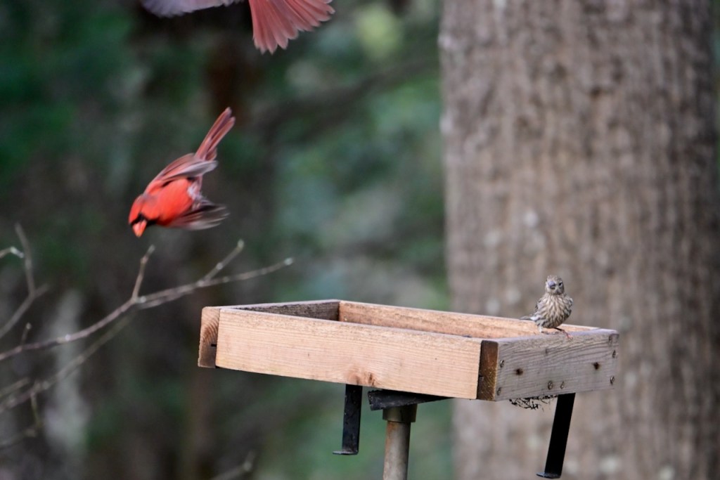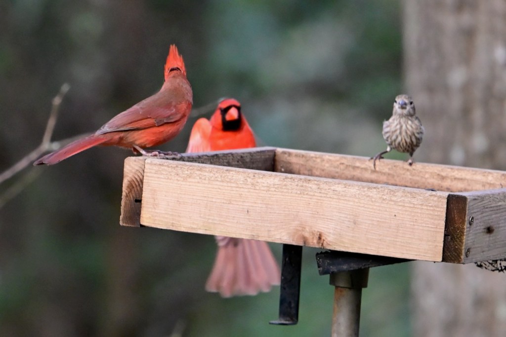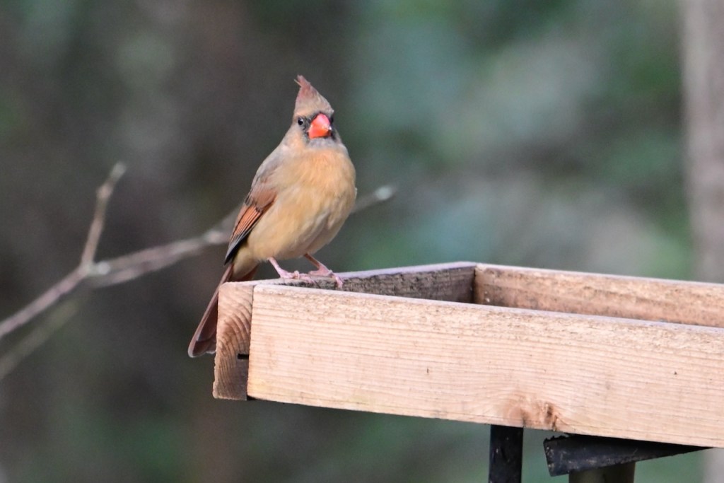 The Northern Cardinal is the perfect bird for Valentine’s Day because of their beautiful red coloring. It is easy to find the males in my back yard, but if I look more carefully, I can spot a female close by. They usually come to my feeders in pairs. Also, most cardinals mate for life so that adds to their romantic image.