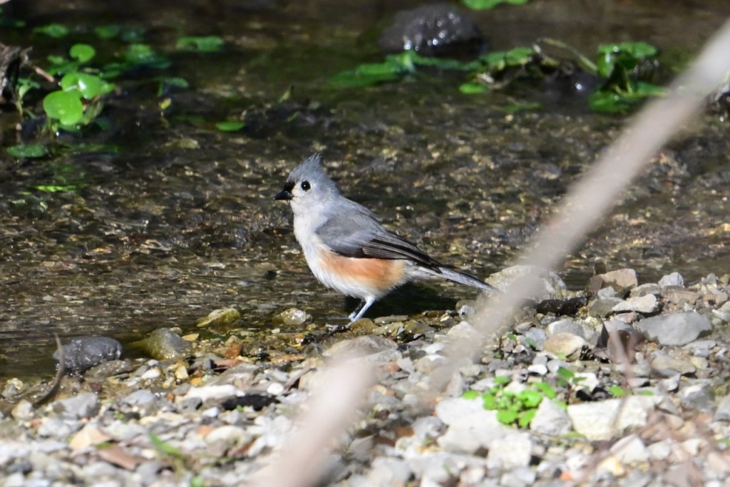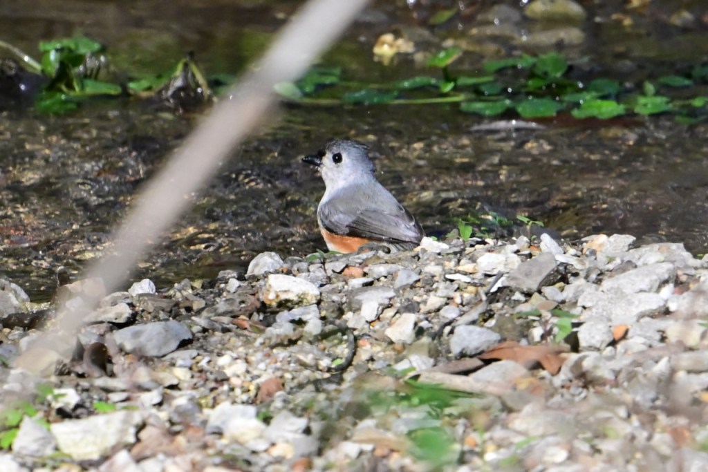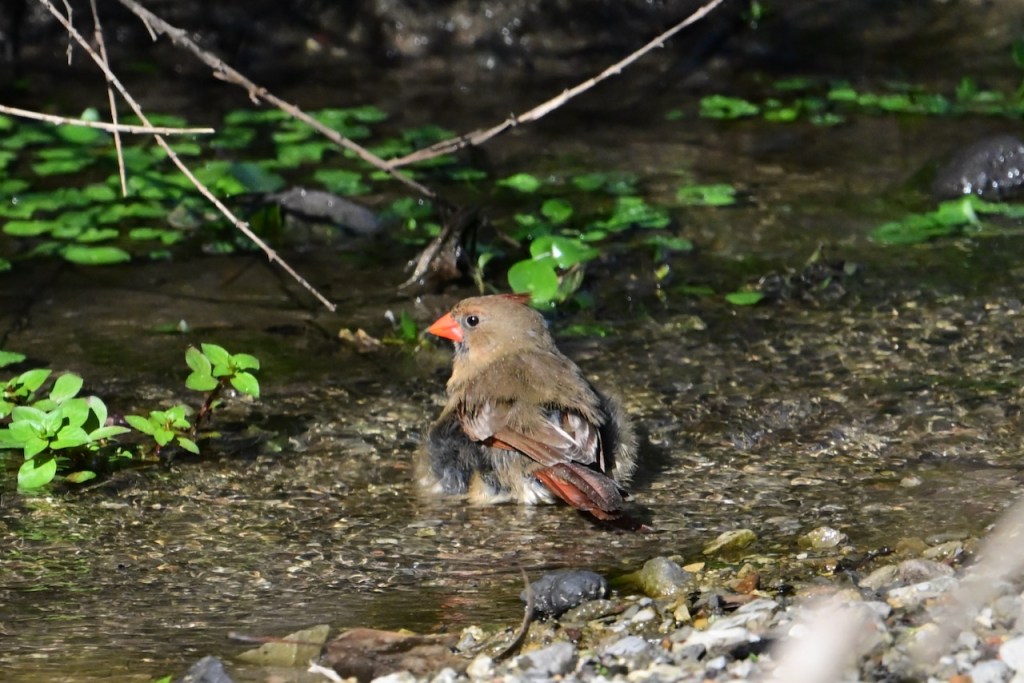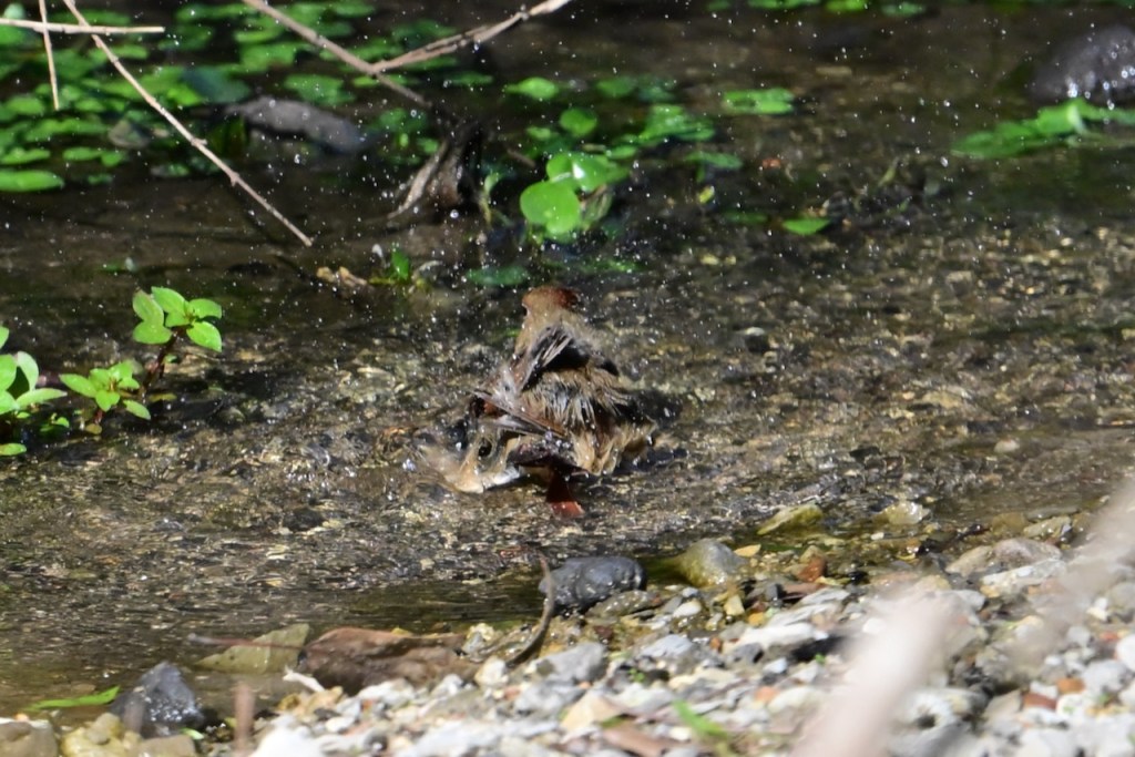 The creek behind my house is a popular spot for birds to take a bath. They seem to like some spots more than others. This spot has water running across pebbles.