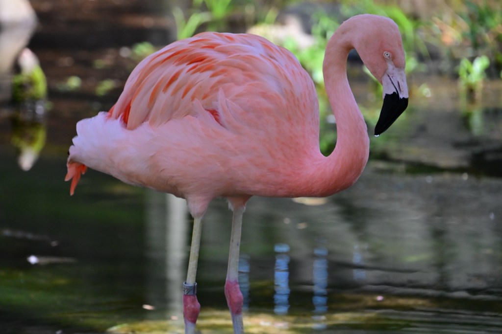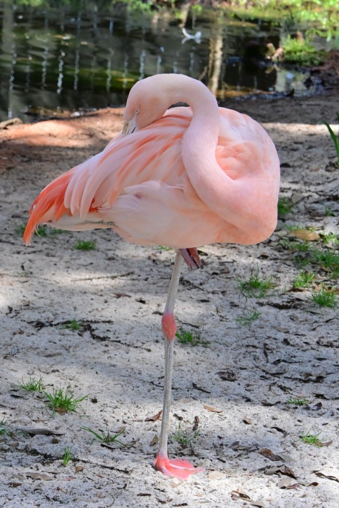 One of the reasons I went to Gulf Breeze Zoo was to take photos of the Chilean Flamingos. Chilean Flamingos are found in Chile, Argentina, Peru, and Western South America. The zoo has a really nice area to see the birds close up. The only problem for a photographer is that it is in the shade.