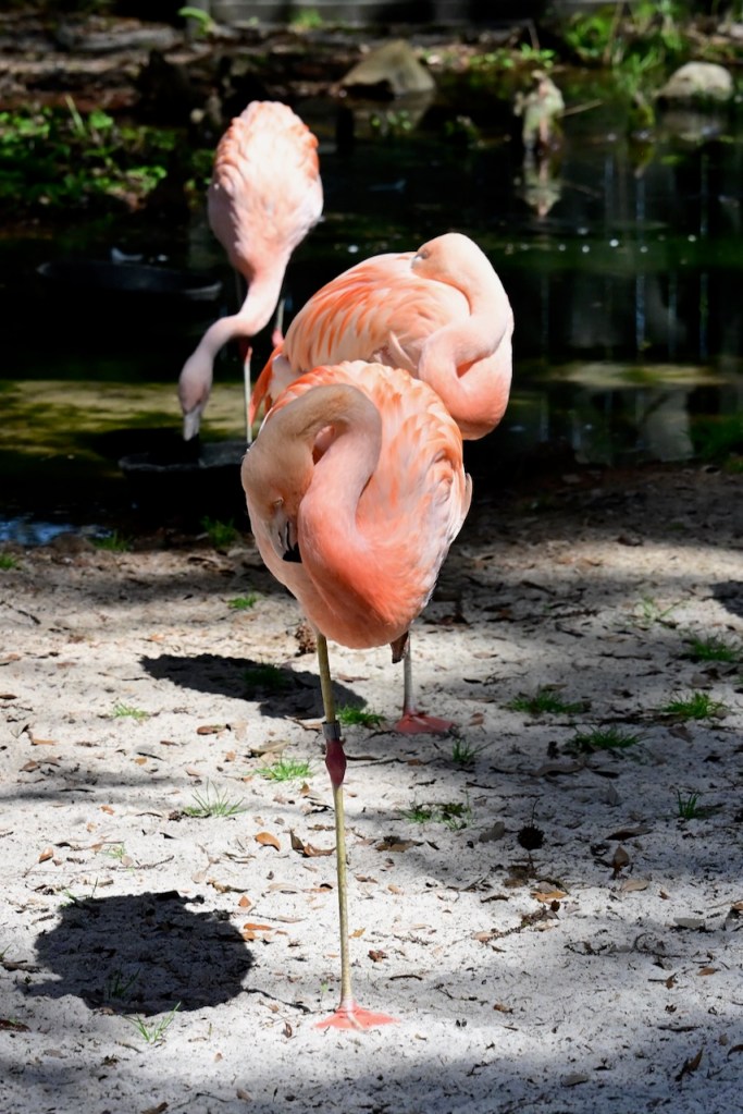 Flamingos are not born pink. The pink coloration comes from the foods they eat: shrimp, mollusks, invertebrates, insects, and algae. The carotenoid pigments from their diet are also found in carrots. I heard a guy on the Bob and Tom show say that his hands had turned orange when he ate a diet of too many carrots.
