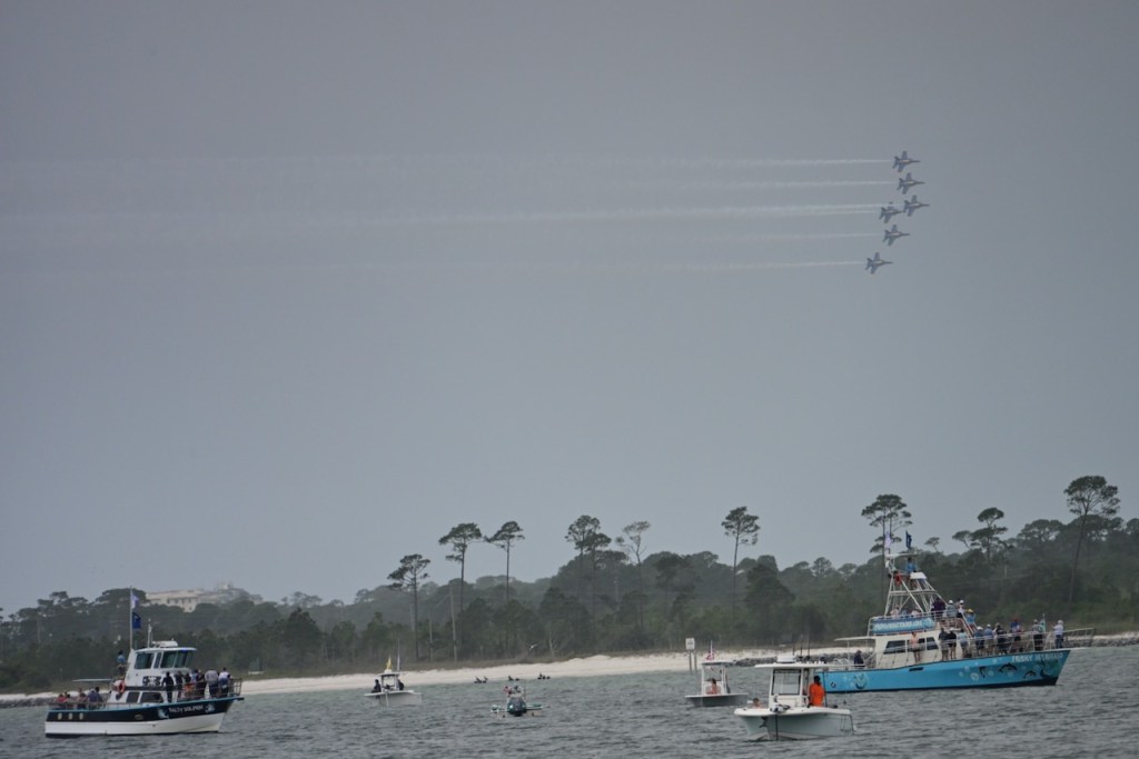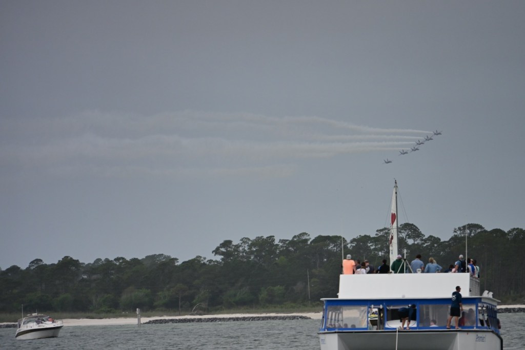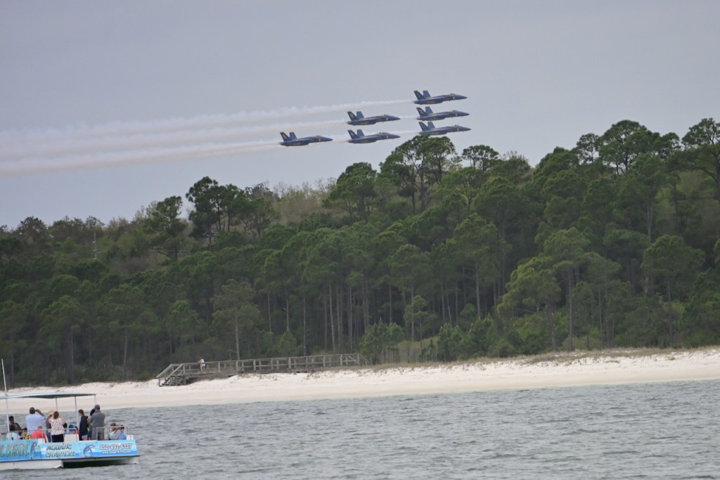 Viewing the Blue Angels practice sessions on the Pensacola Bay City Ferry is a lot more fun than sitting in the WalMart parking lot. WKRG news had a story about people viewing from the parking lot as an option since the base is not allowing civilians on the flight line at this time. They did seem to get some good shots of the jets, so I may try it as well.