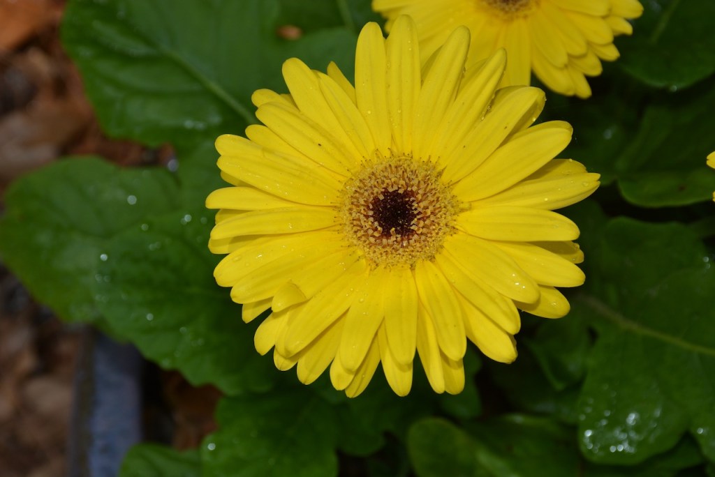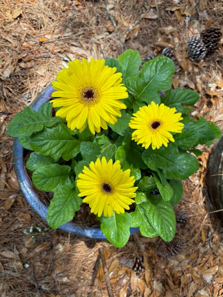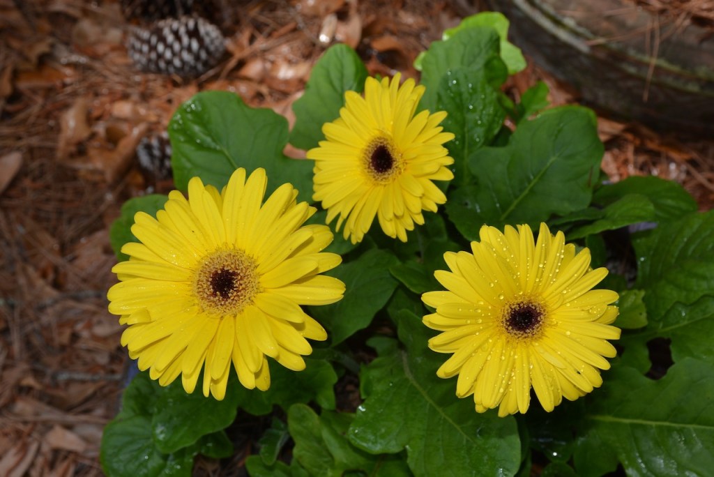 I planted this Gerbera Daisy a year or two ago. It looked dead during the winter, but I continued to water it. Last week, one yellow flower bloomed and now there are three.